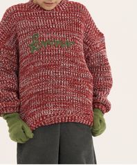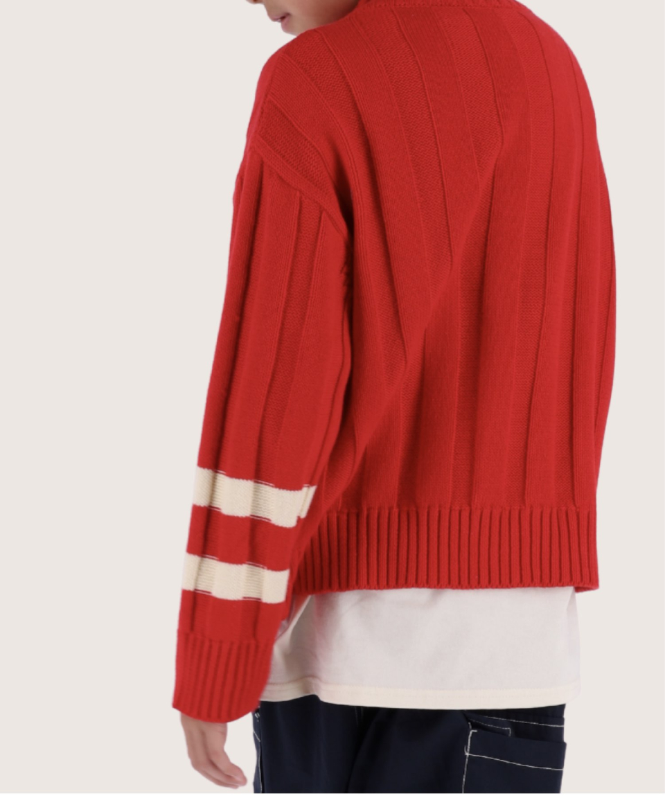 Paul 컬러믹스 니트 맨투맨 레드