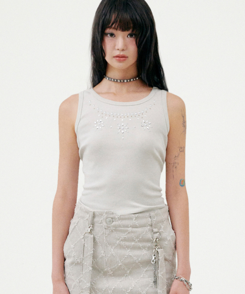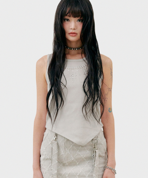 T22.00 Sleeveless Stud point T-shirt _ Beige Pattern2