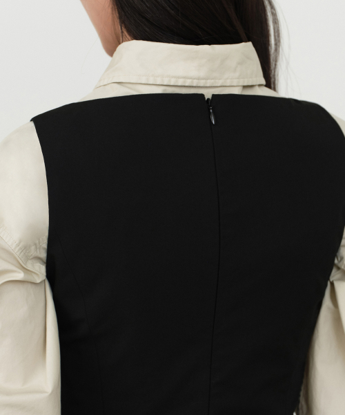 우먼즈 슬림 플리츠 미니 드레스 [블랙]