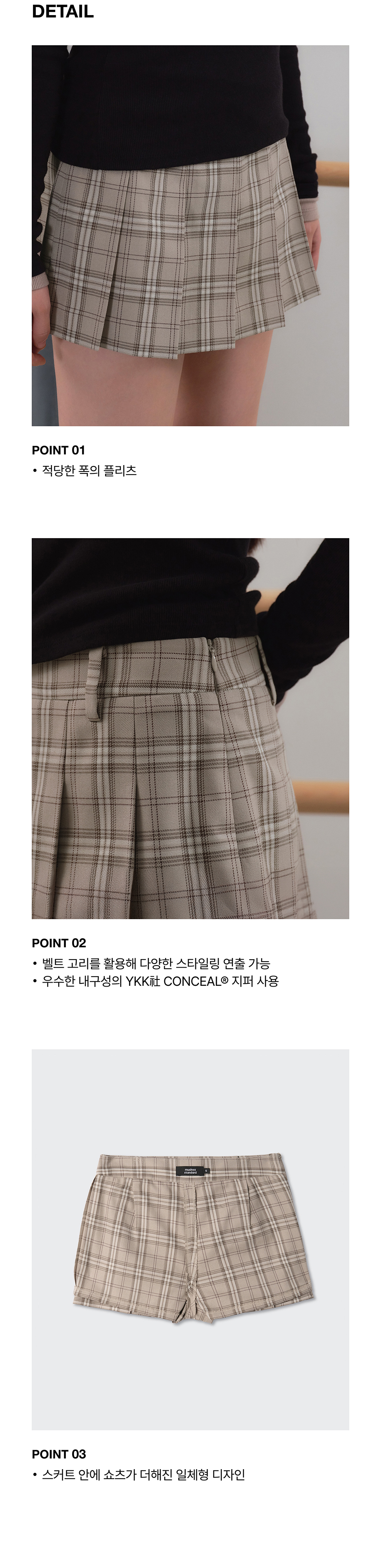 우먼즈 체크 플리츠 미니 스코츠 [미디엄 그레이]