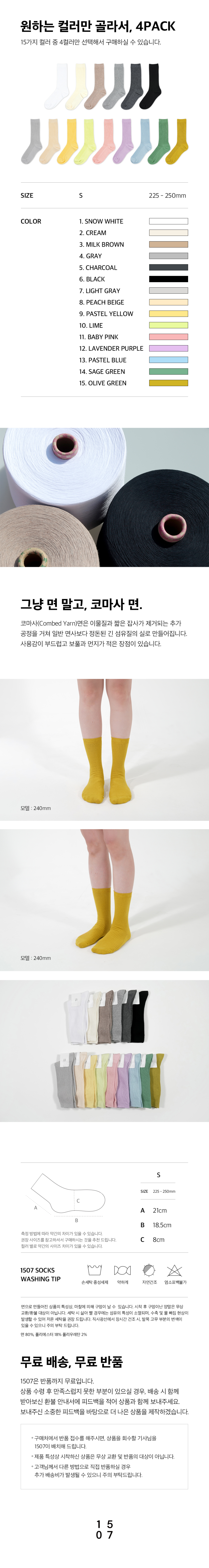 [3PACK] 1507 유니섹스 미들 도트 베이직 삭스 - 컬러선택형