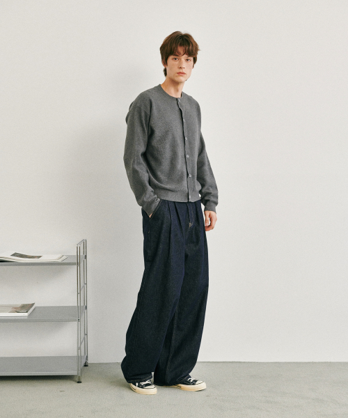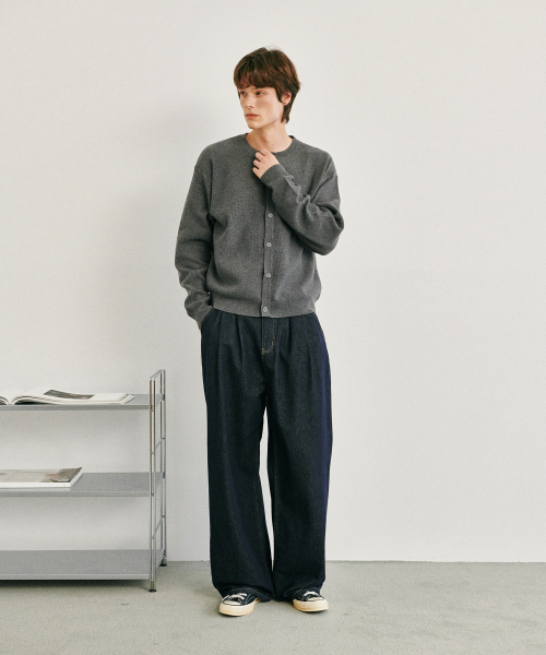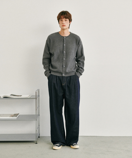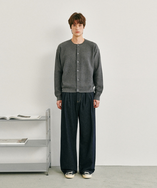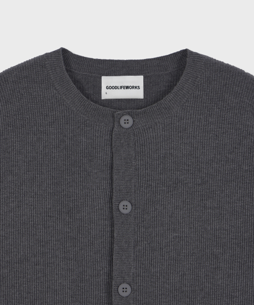 에센셜 라운드넥 니트 가디건 차콜