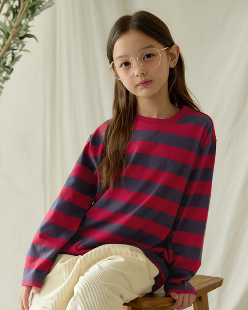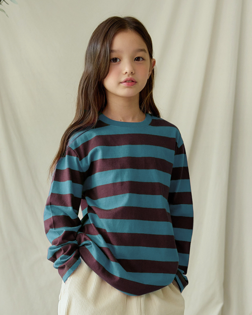 스트라이프 선염 긴팔 티셔츠