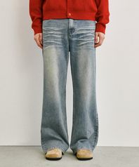 ADSB 패치 스프레이 워쉬 와이드 레그 데님 팬츠 apa816m(BLACK)