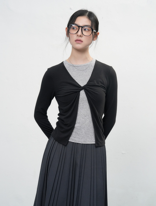 레이어드 트위스트 티셔츠 [CHARCOAL] / WBE3L01502