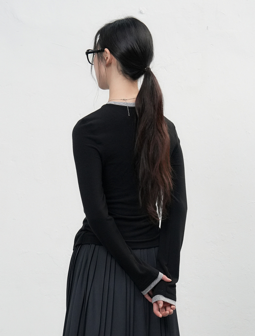 레이어드 트위스트 티셔츠 [BLACK] / WBE3L01502