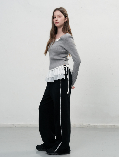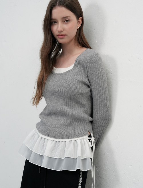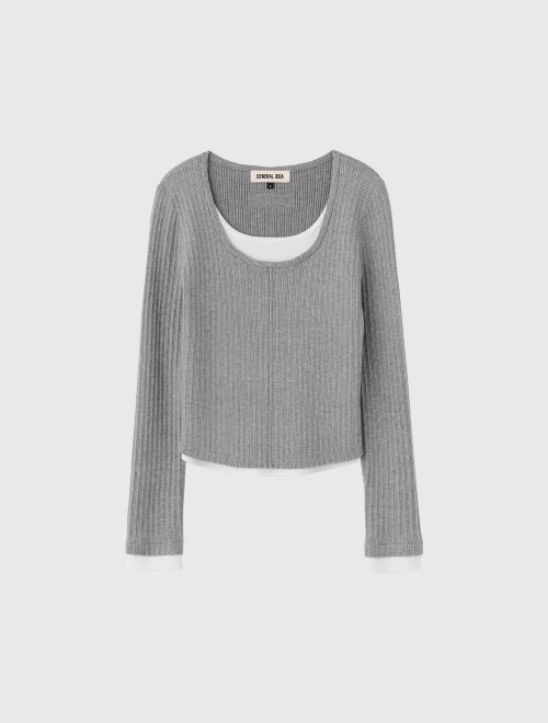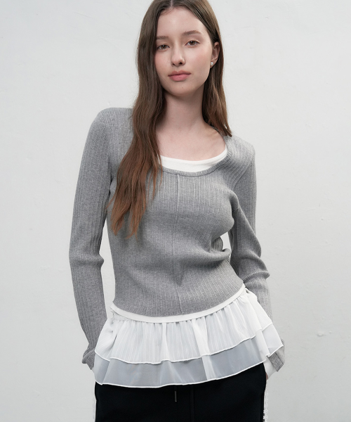 더블 레이어드 롱슬리브 니트 [GREY] / WBE3L05501
