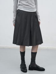 와이드 플리츠 미디 스커트 [CHARCOAL] / WBE3L13510