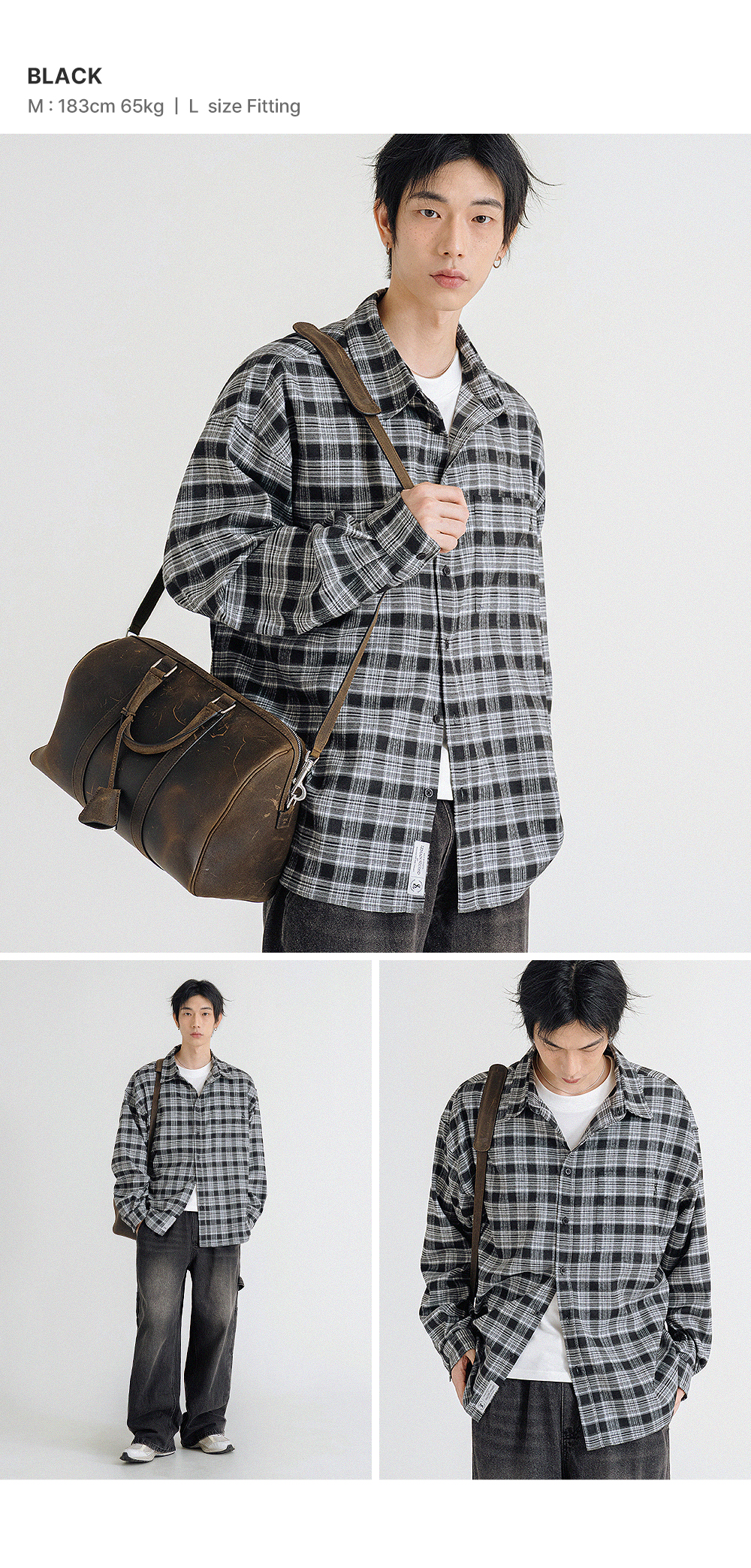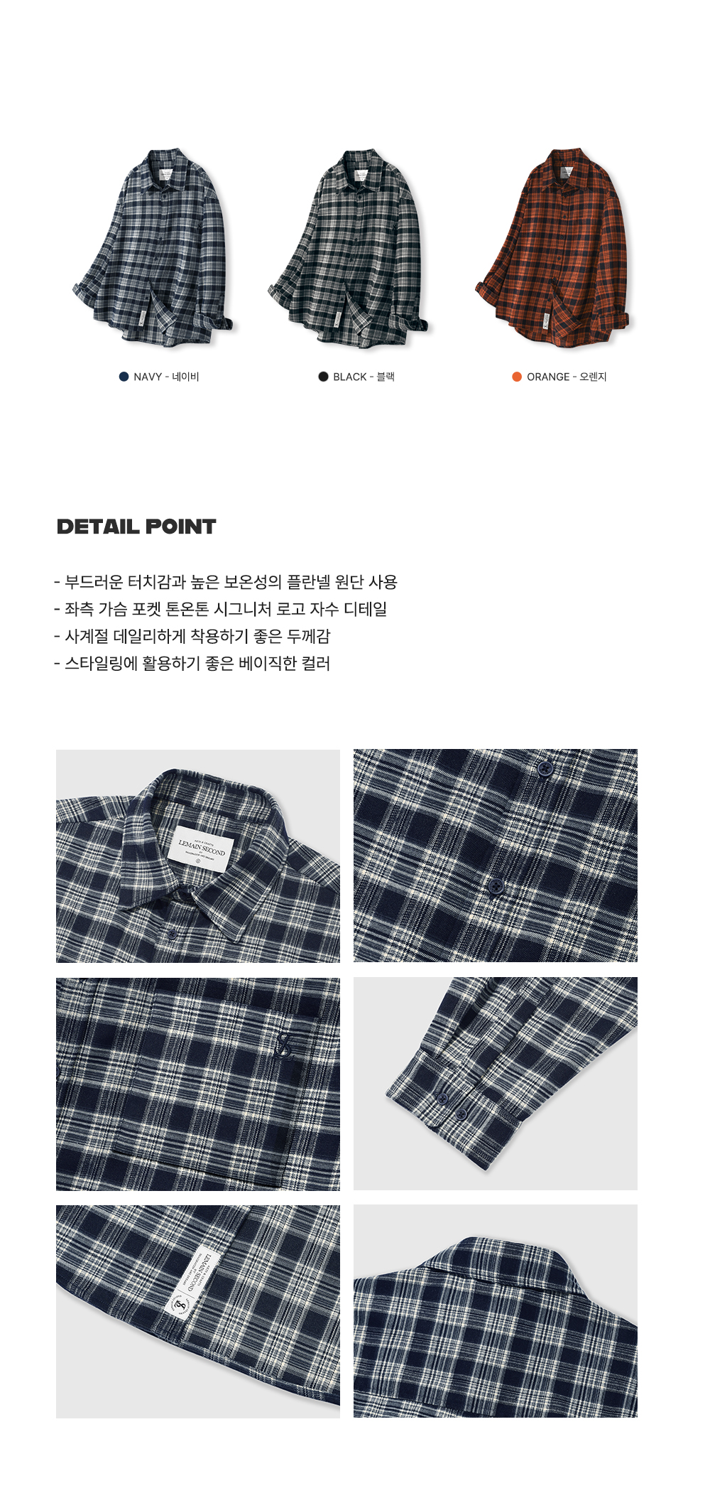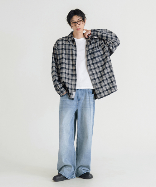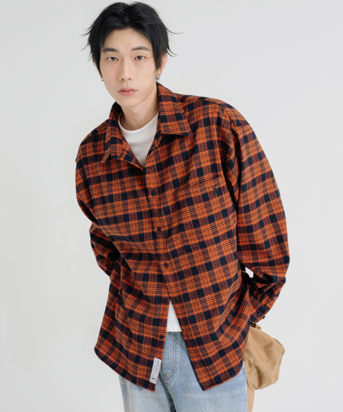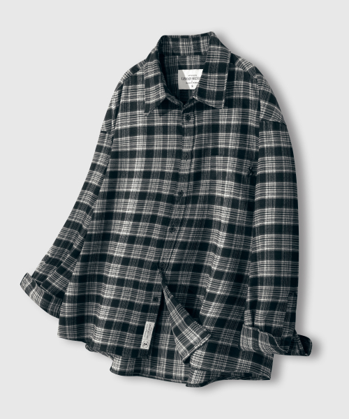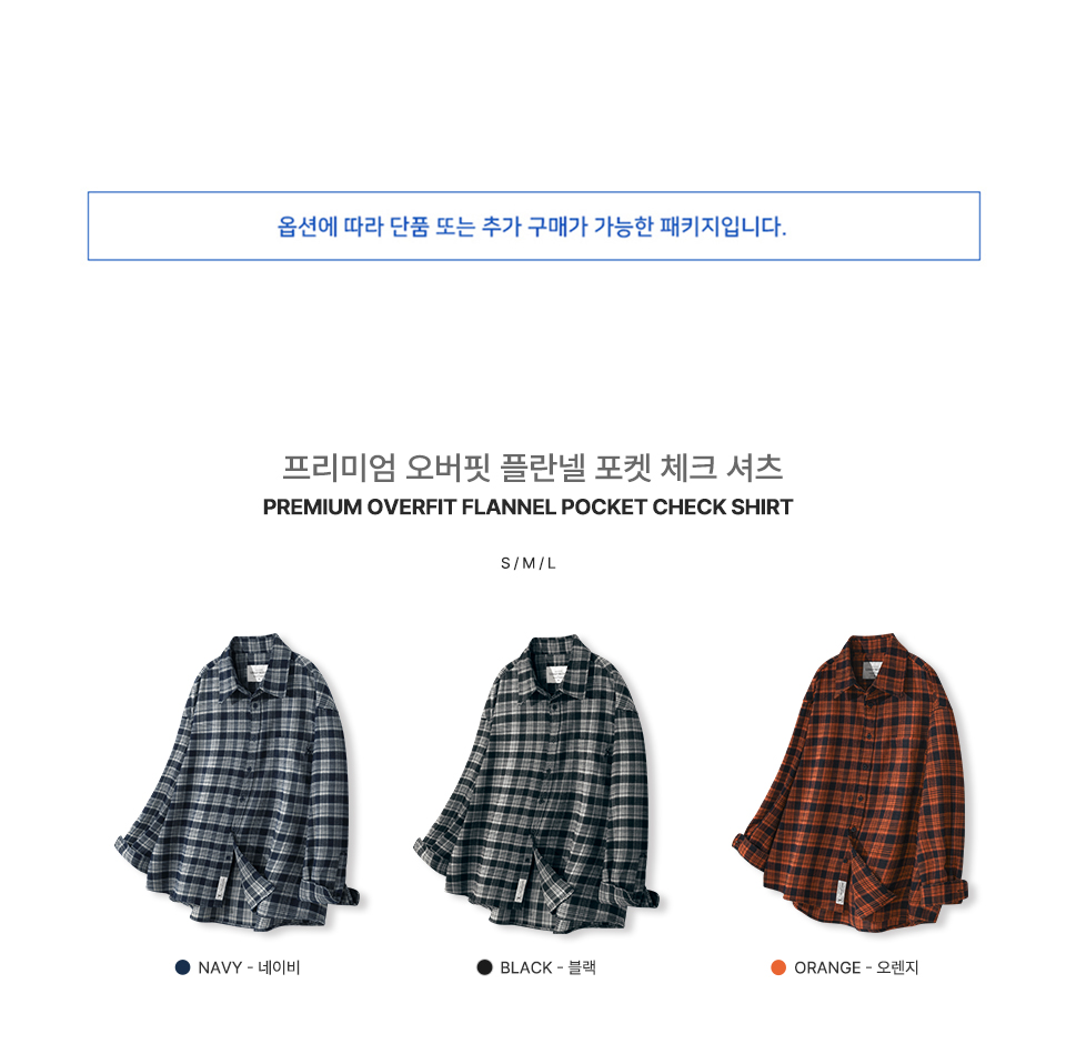 프리미엄 오버핏 플란넬 포켓 체크 셔츠_3COLOR