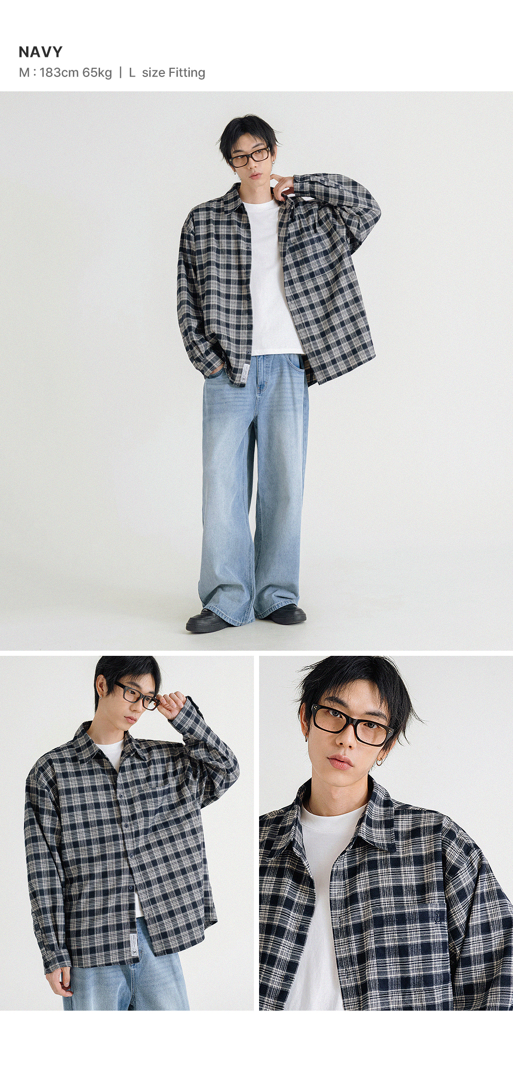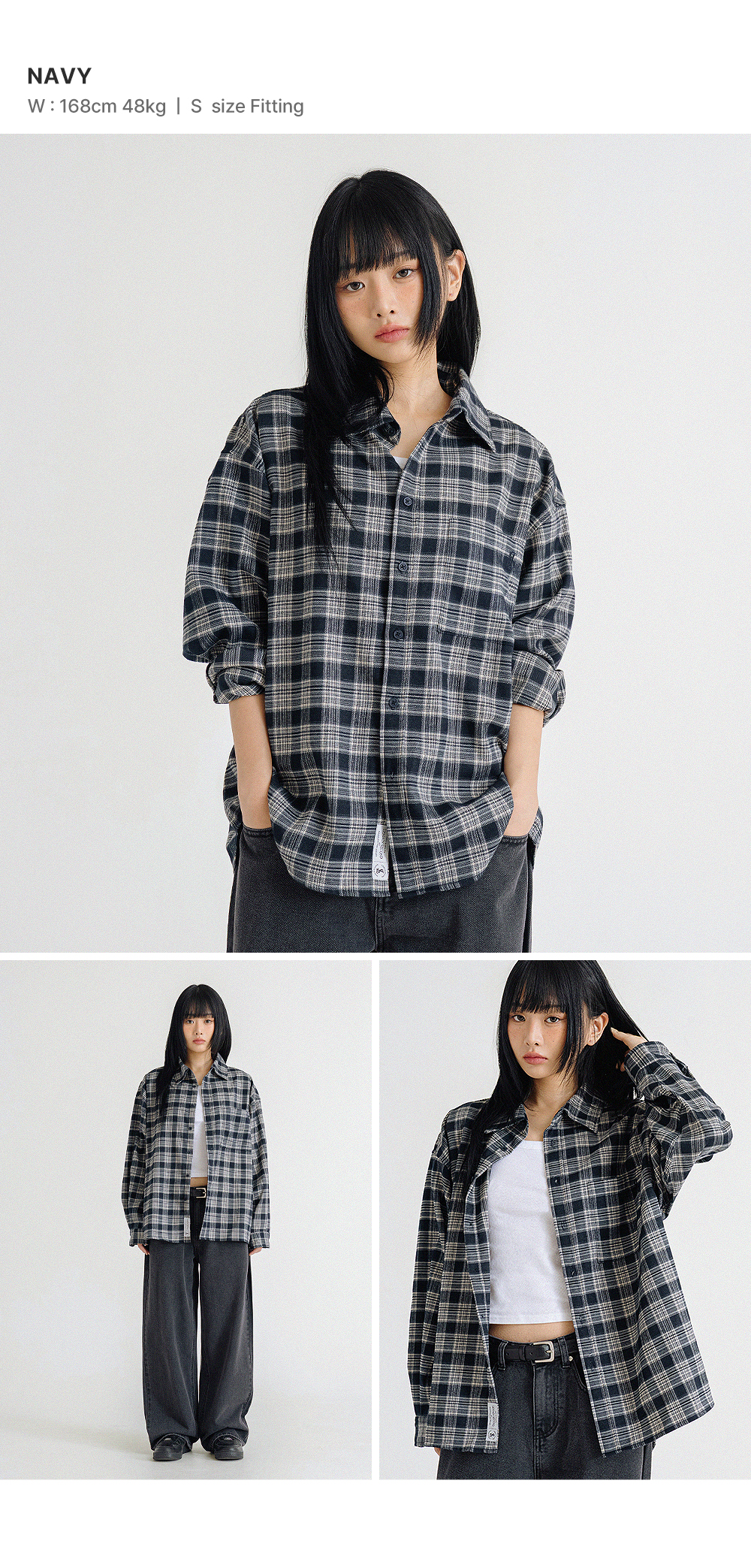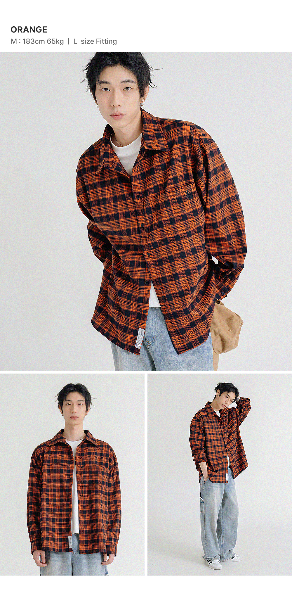 프리미엄 오버핏 플란넬 포켓 체크 셔츠_3COLOR