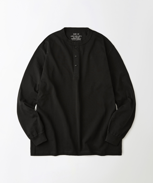 HENLEY NECK LONG SLEEVE TEE_BLACK