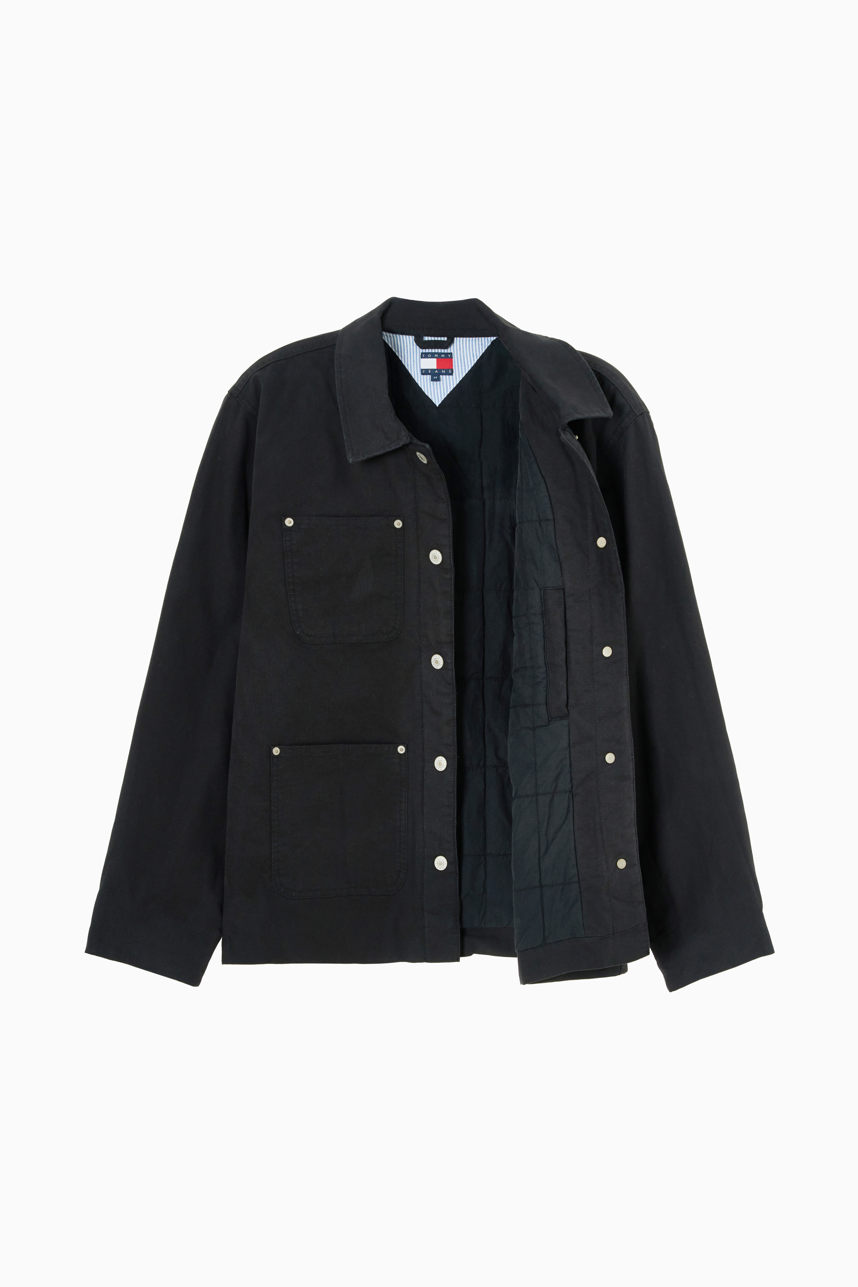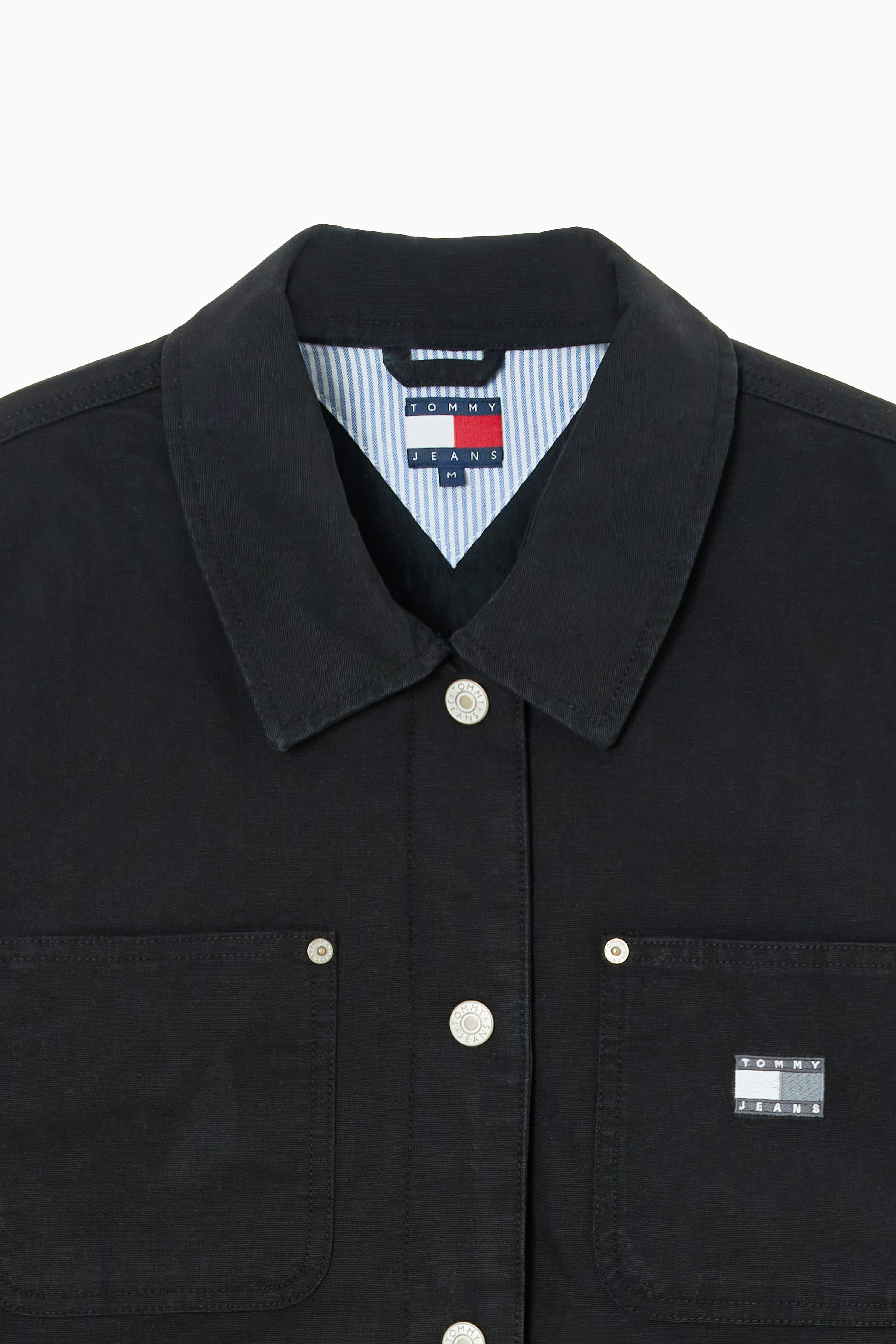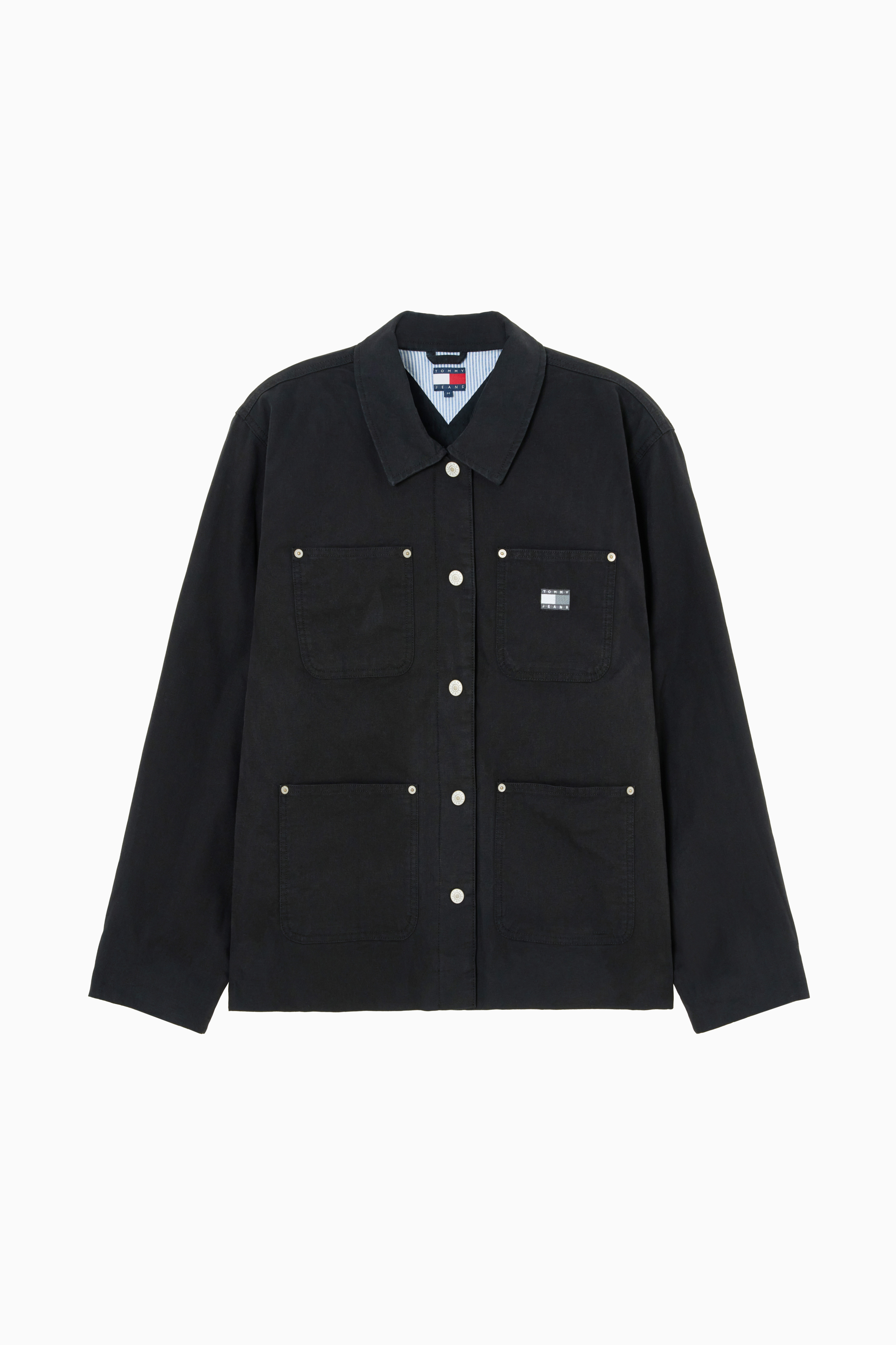 앞면에는 포켓 4개와 왼쪽 가슴 포켓 위에 플래그 자수가 세련된 포인트를 더하며, 캔톤 버튼 클로징으로 깔끔하게 마무리됩니다.