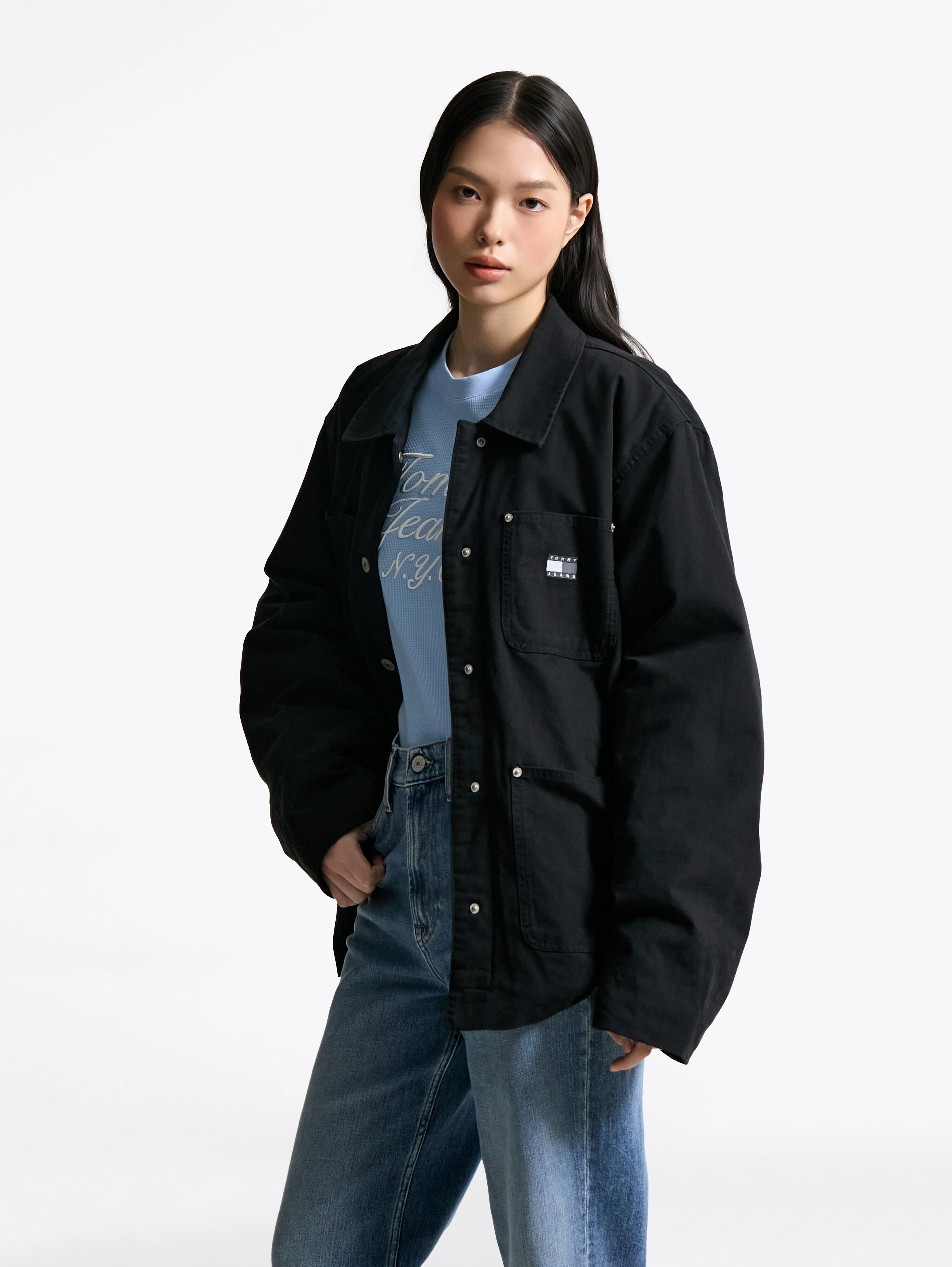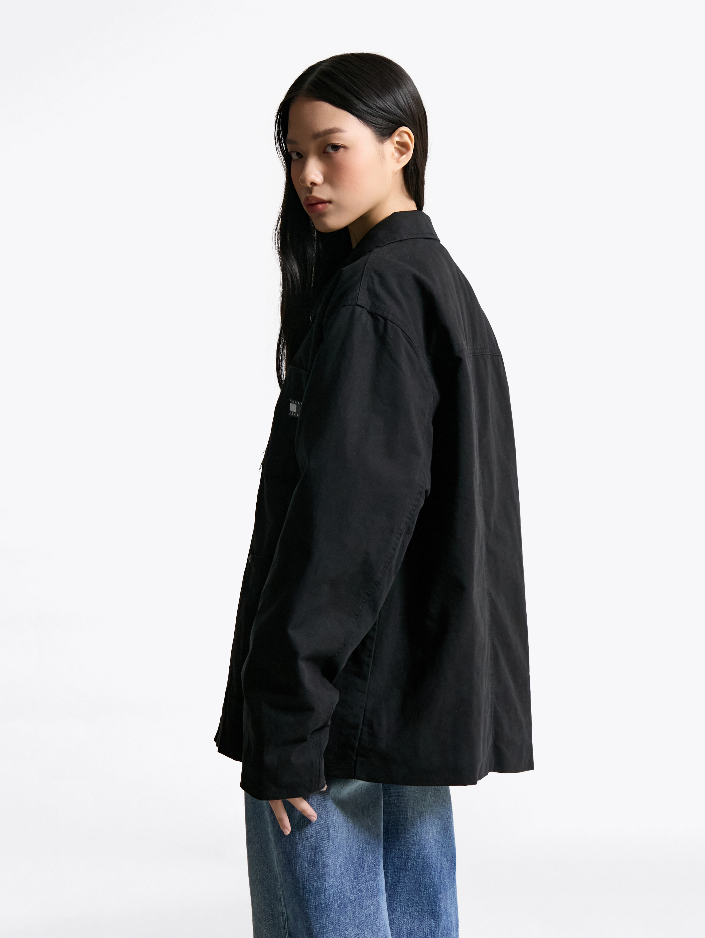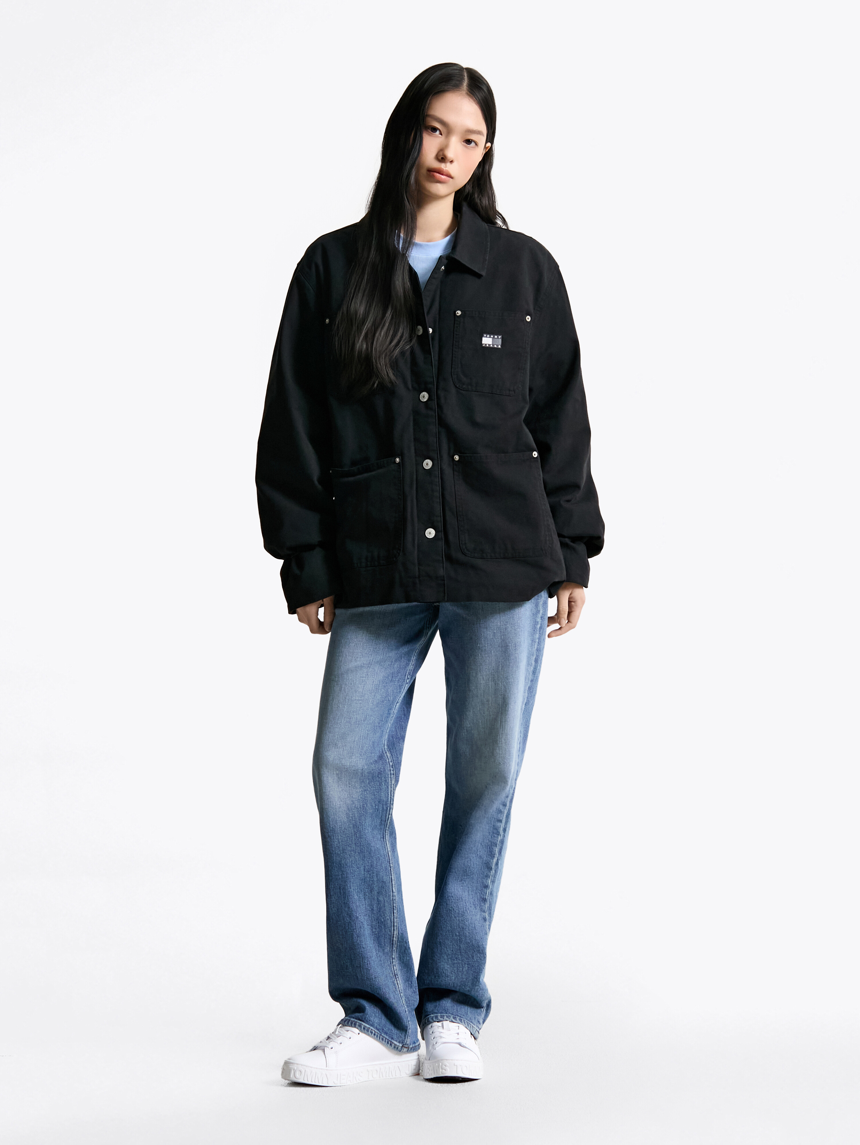 앞면에는 포켓 4개와 왼쪽 가슴 포켓 위에 플래그 자수가 세련된 포인트를 더하며, 캔톤 버튼 클로징으로 깔끔하게 마무리됩니다.