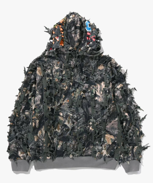 트리 엣지 카모 레이저 컷 샤크 크롭 핏 풀 집 후드(M) BROWN