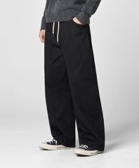 밴딩 스트링 와이드 절개 코튼 팬츠 [블랙]