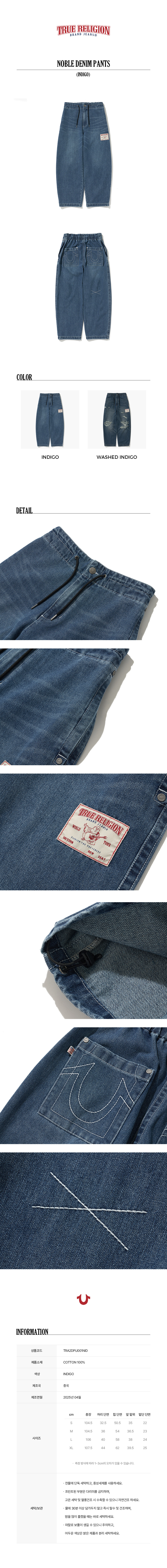 트루릴리젼(TRUERELIGION)은 2002년 미국에서 설립된 프리미엄 데님 브랜드입니다. Big-T, Super-T로 대표되는 스티치와 더불어 높은 퀄리티의 핏과 완성도를 지향합니다.