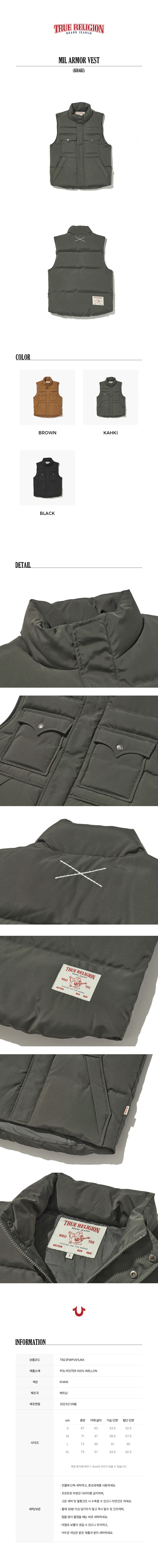 트루릴리젼(TRUERELIGION)은 2002년 미국에서 설립된 프리미엄 데님 브랜드입니다. Big-T, Super-T로 대표되는 스티치와 더불어 높은 퀄리티의 핏과 완성도를 지향합니다.