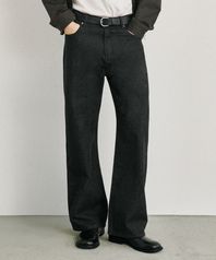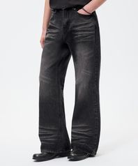 캣 브러시 워싱 플레어 와이드 데님 팬츠_노말 블랙