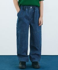 와이드 카펜터 밴딩 데님 팬츠 [미디엄 인디고]