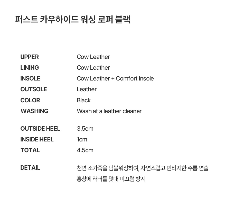 퍼스트 카우하이드 워싱 로퍼 블랙