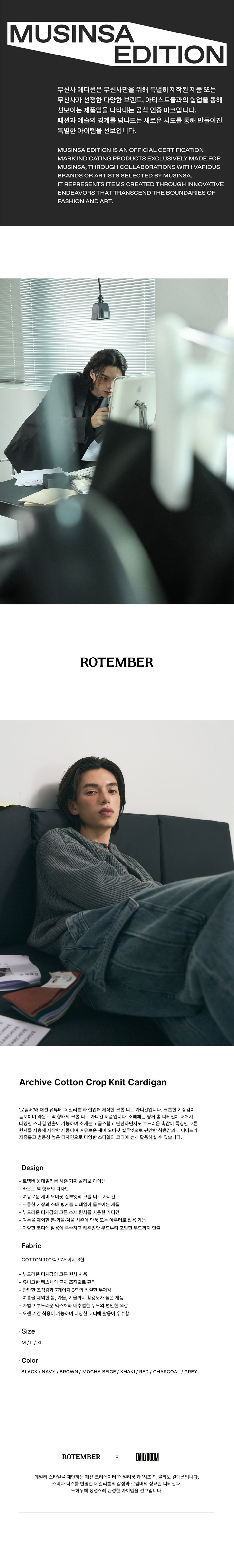 [데일리룸 X 로템버] 아카이브 코튼 크롭 니트 가디건 [ 8 COLOR ]