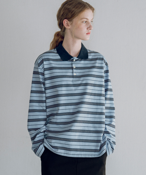 아이비 스트라이프 라운드 롱슬리브 티셔츠 그레이