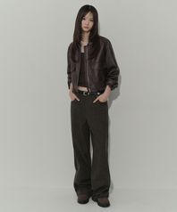 우먼즈 레오파드 와이드 데님 팬츠 [카키 그레이]