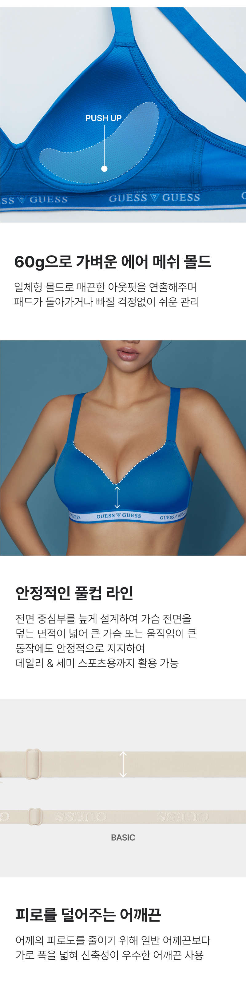 게스 언더웨어(GUESS UNDERWEAR)는 게스(GUESS)의 디자인에 한국인 체형에 맞춘 테크놀로지를 개발, 결합하여 뛰어난 품질의 언더웨어를 합리적인 가격에 제시합니다.