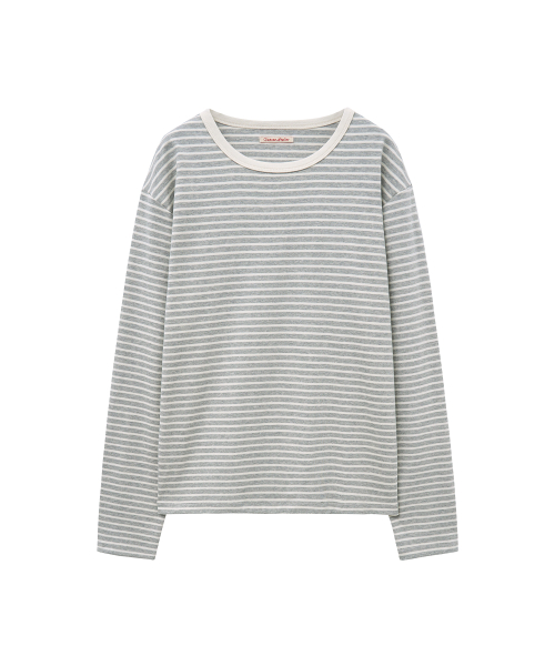 A3546 스트라이프 라운드 티셔츠_Melange gray