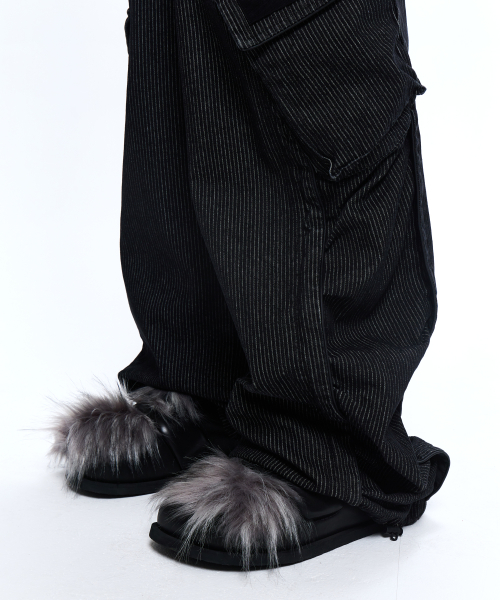 WRINKLE MIXED STRIPE CARPENTER DENIM PANTS - BLACK