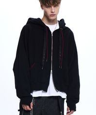 DENIM STRAP CROP HOOD ZIPUP - BLACK