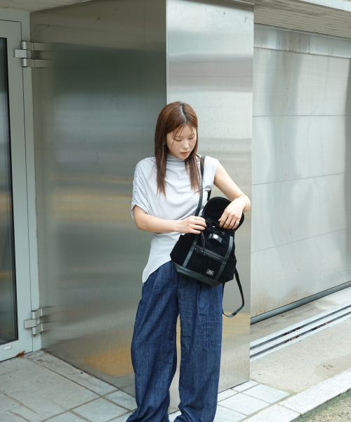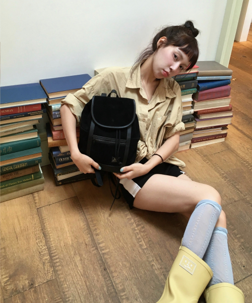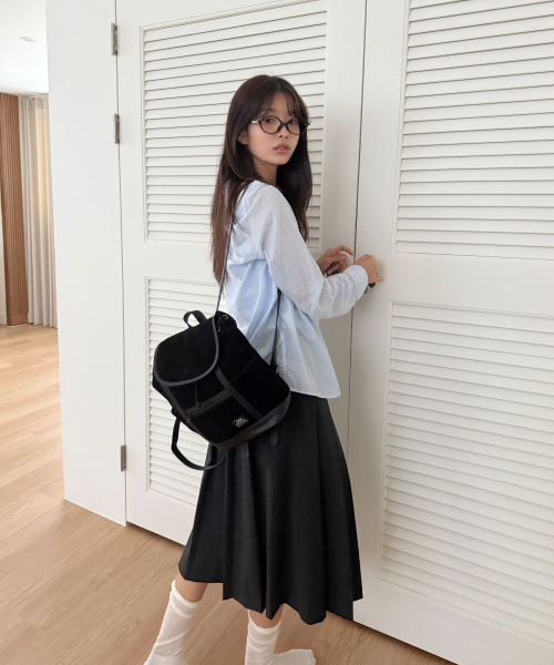 레더 배색 스웨이드 미니 백팩 블랙