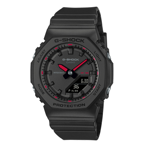 베이직한 블랙에 생동감 있는 컬러를 더해 스타일리시하면서도 스포티한 무드를 완성한 GMA-P2100SA 시리즈입니다. 스포츠 아이템에서 영감을 받은 비비드한 포인트 컬러가 블랙 바디와 선명한 컬러 대비를 이루며 착용자의 개성을 더욱 돋보이게 해줍니다. 컴팩트한 사이즈로 누구나 부담 없이 착용할 수 있으며, 캐주얼부터 애슬레저까지 다양한 스타일에 잘 어우러져 스포티한 코디를 손쉽게 완성할 수 있습니다. 비비드한 포인트 컬러는 시곗바늘과 분 표시 눈금의 포인트로 사용되었고, 바늘의 야광 컬러 역시 같은 계열로 매치해 감각적인 통일감을 주었습니다.