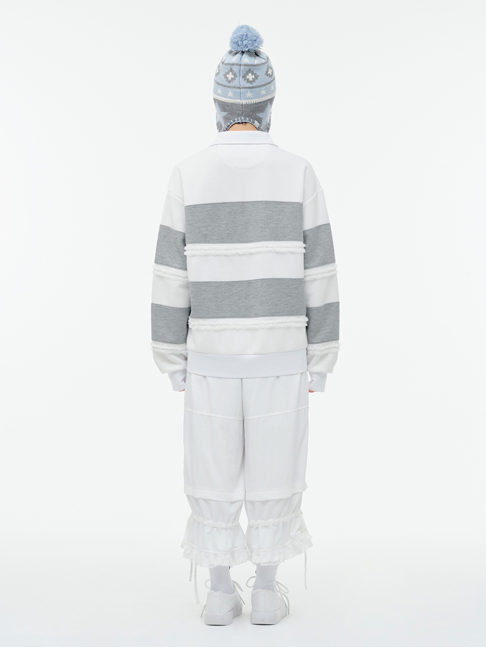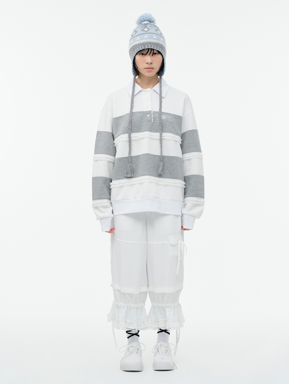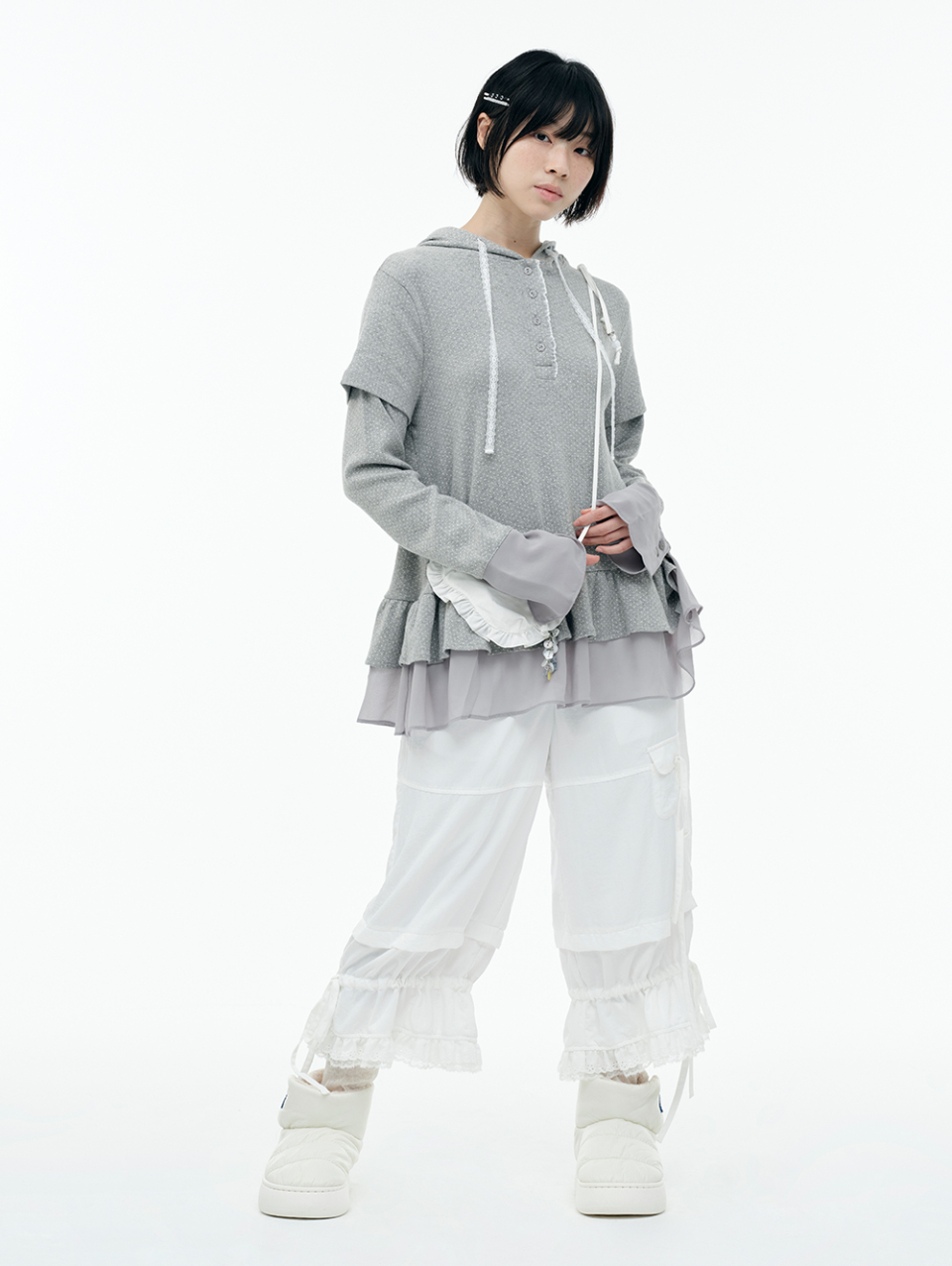 Lace Frame Stripe Hood Zip-Up_Light Gray