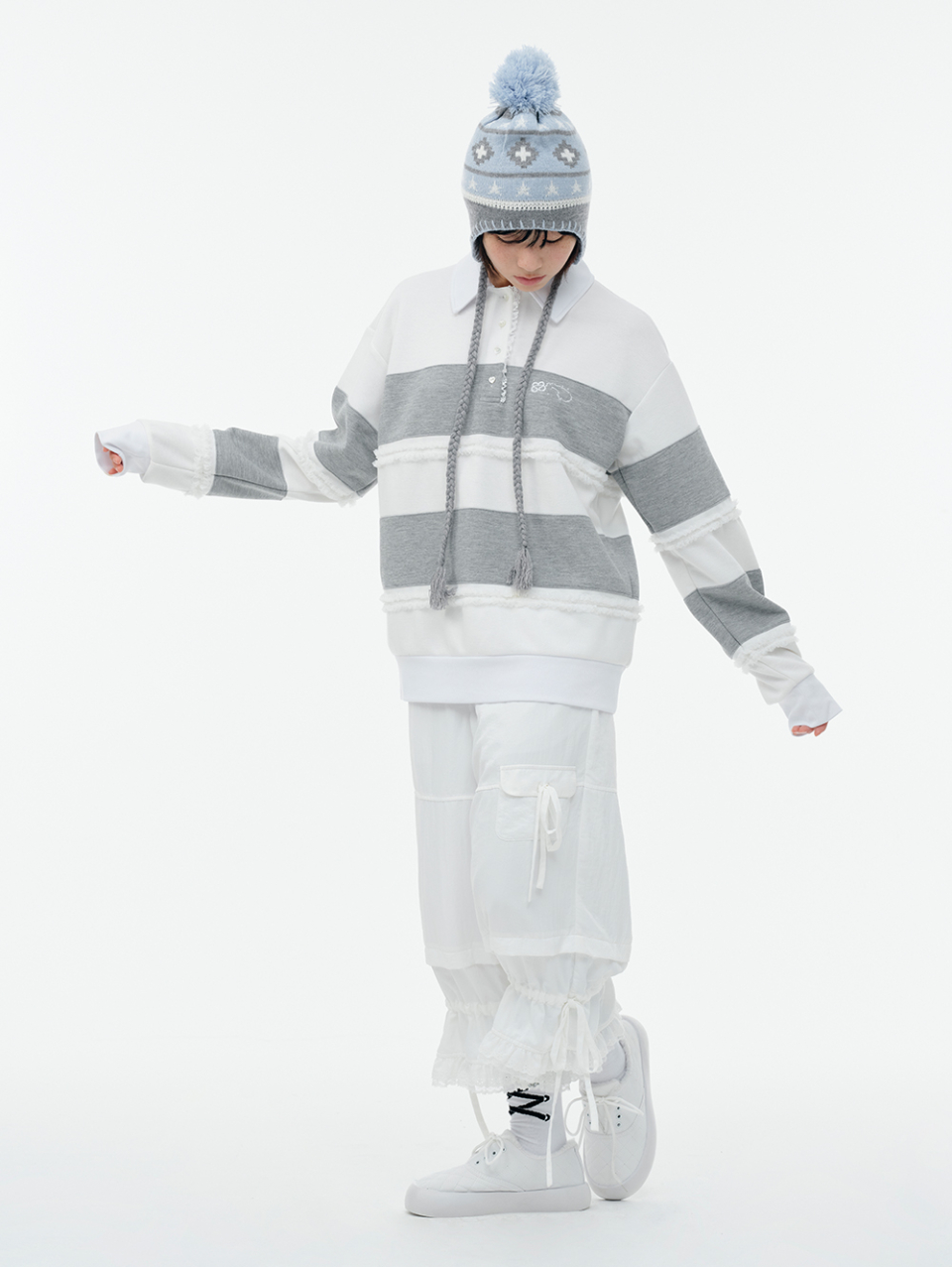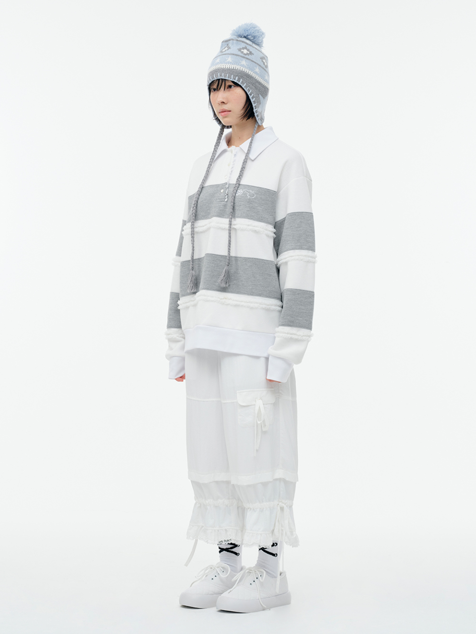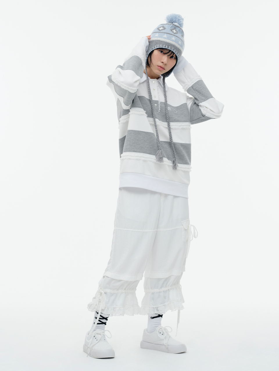 Lace Frame Stripe Hood Zip-Up_Light Gray
