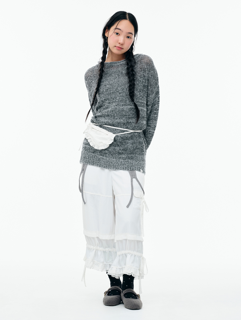 RIBBON MIDI PANTS [WHITE]