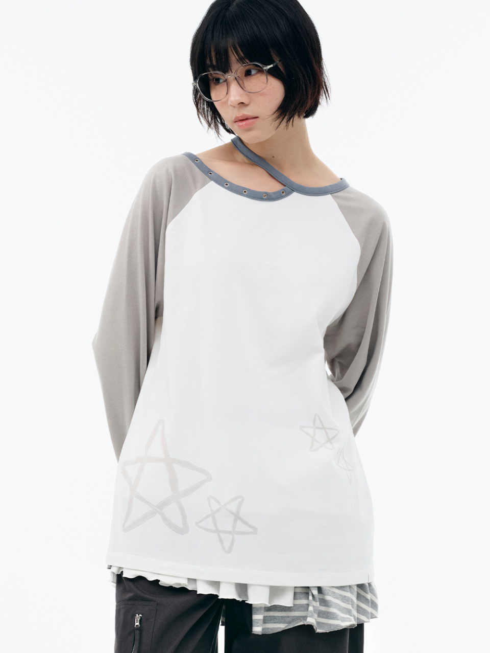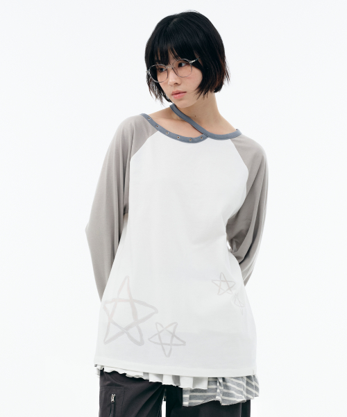 CUT-OUT STAR LONG SLEEVES [WHITE]