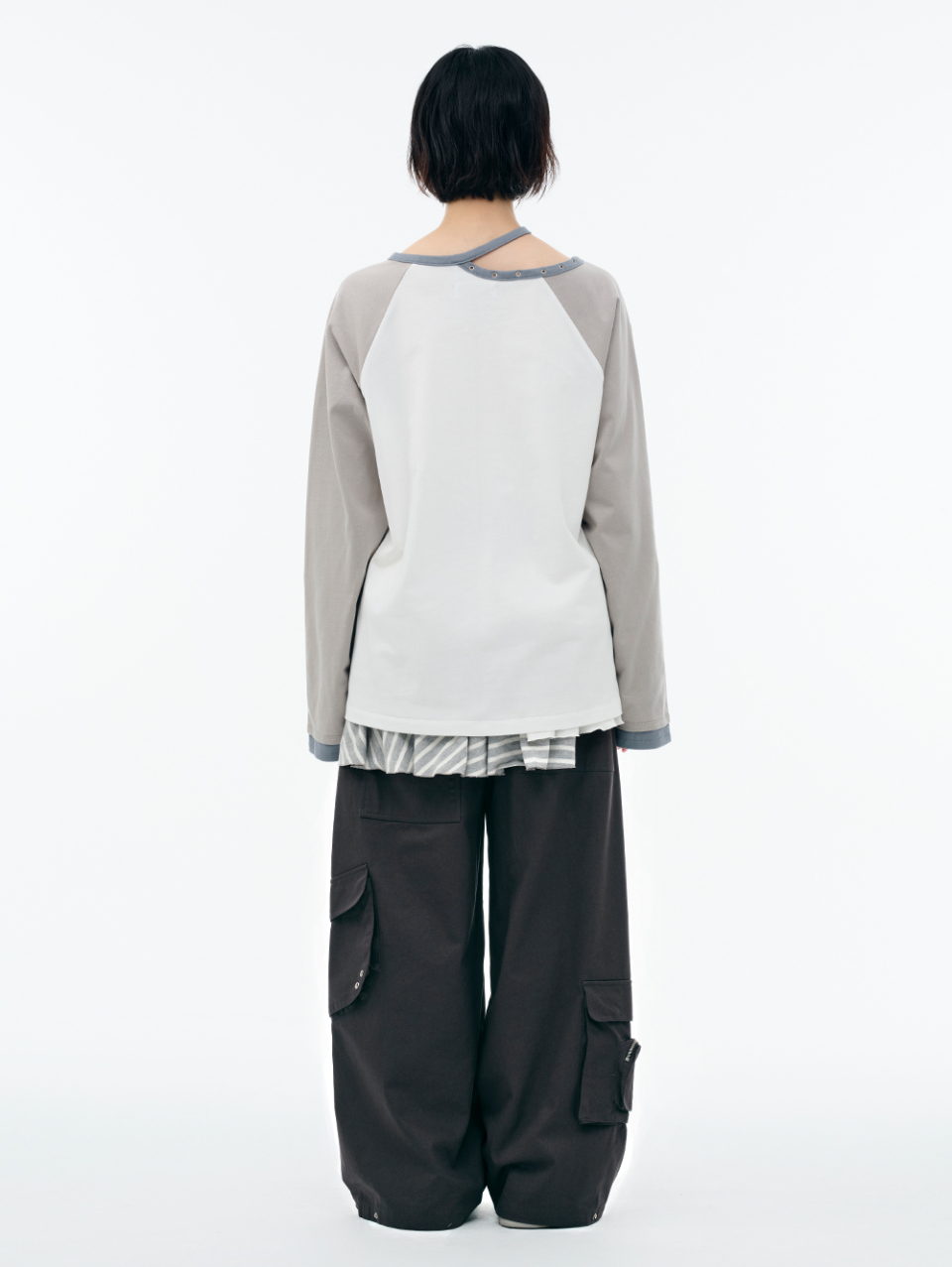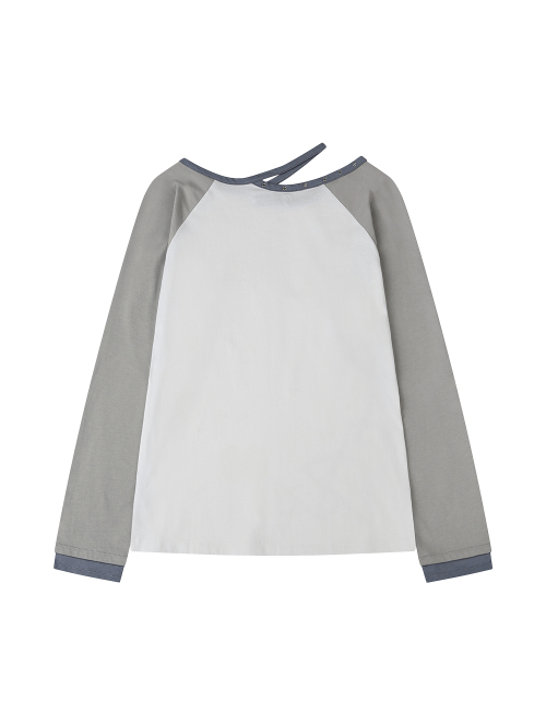오프숄더 레터링 그래픽 후드 긴팔 티셔츠 GREY