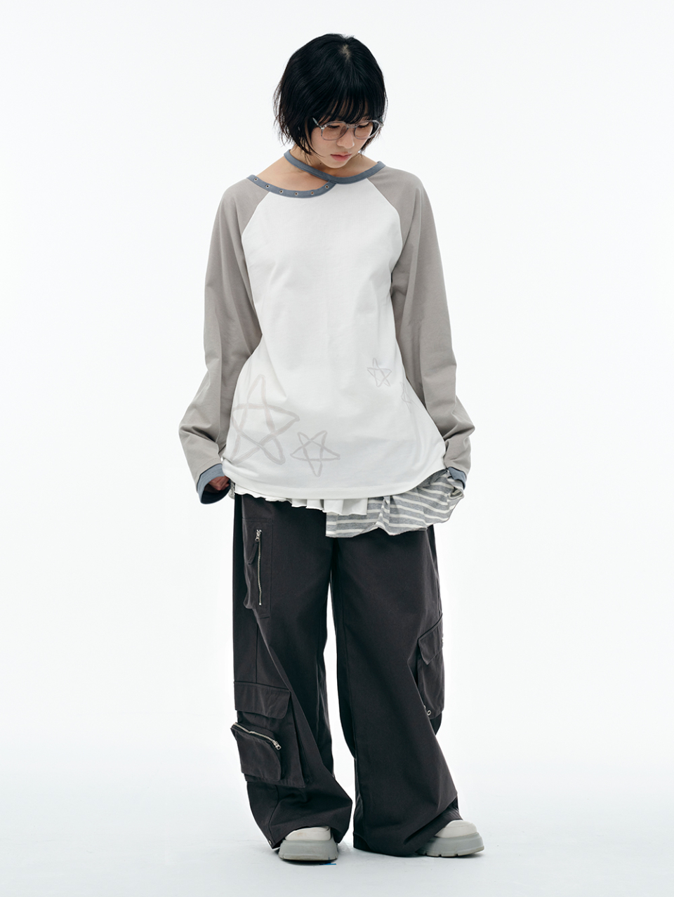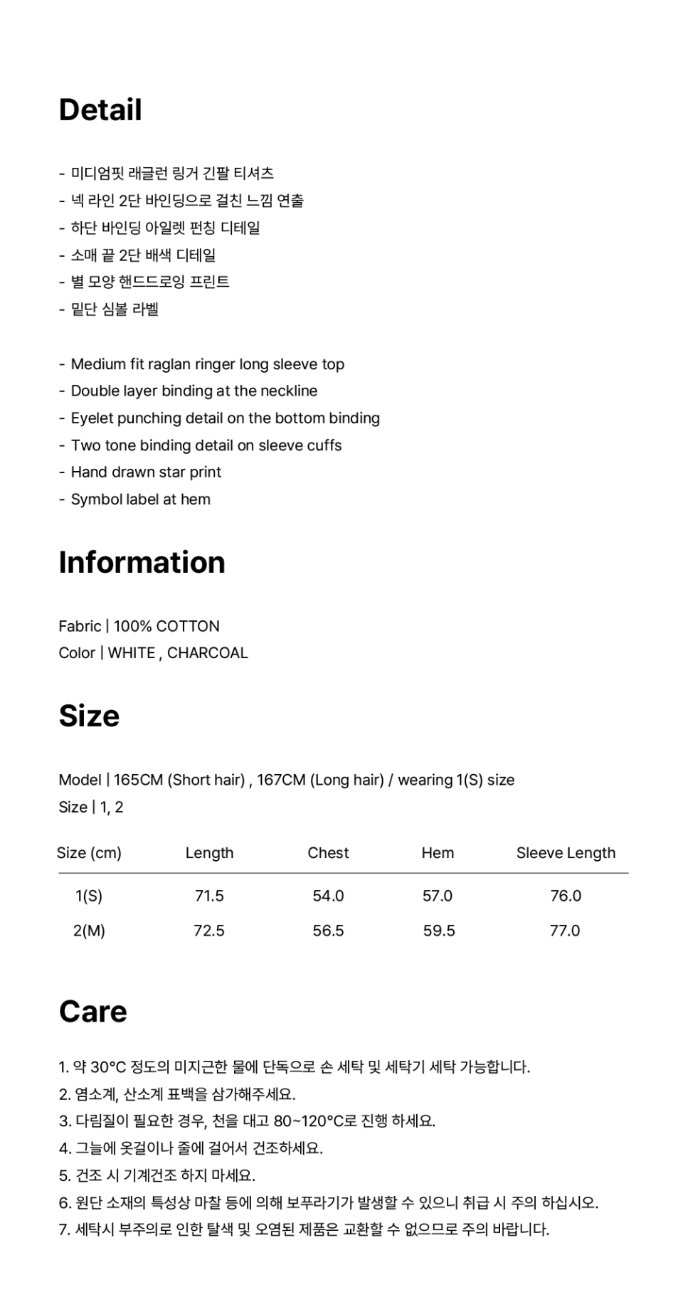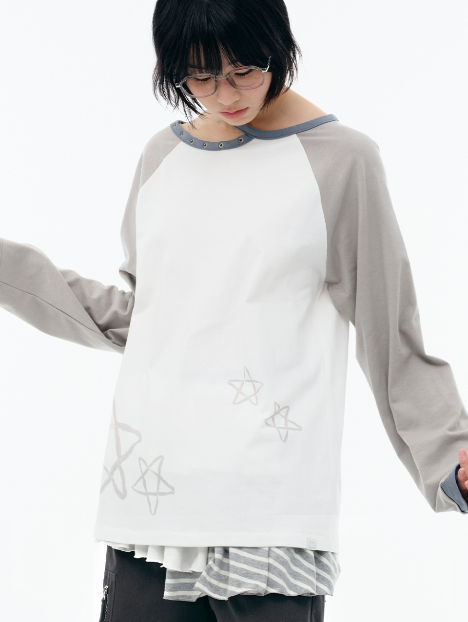 U NECK STAR RAGLAN LS TEE WHITE(CV2GSFT553A)