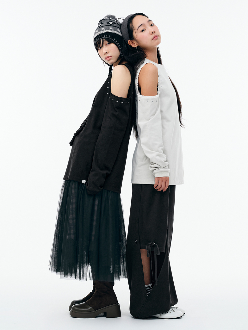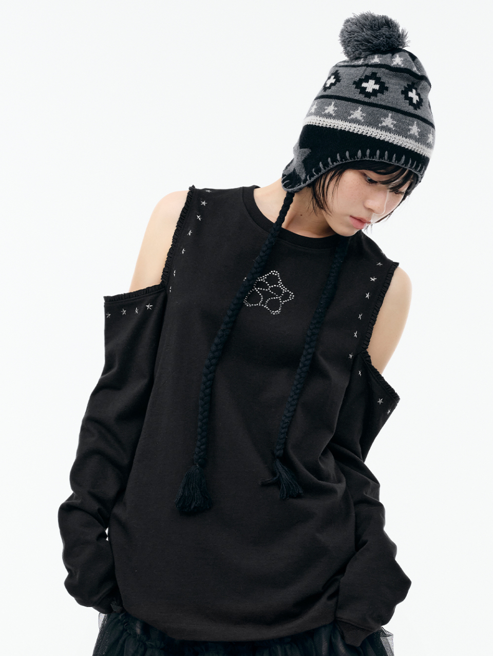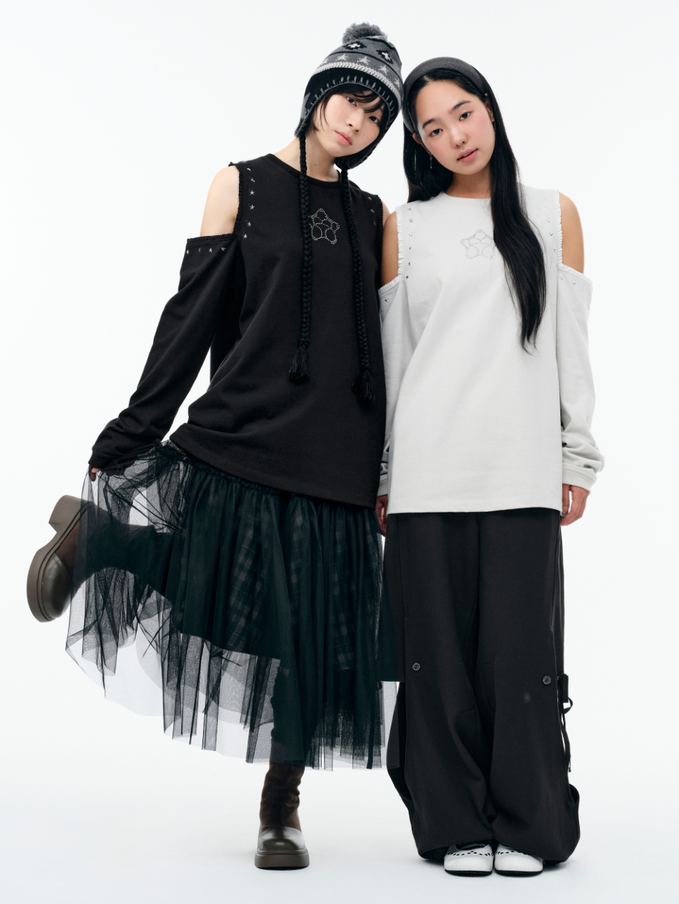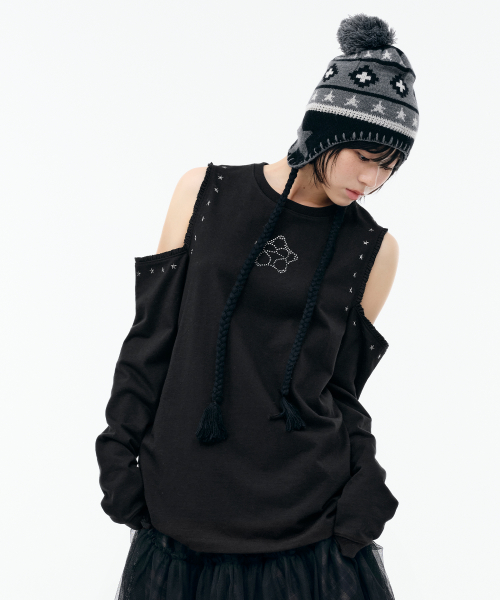 WXT067 구르구르 아플리케 원숄더 맨투맨 (MELANGE GRAY)