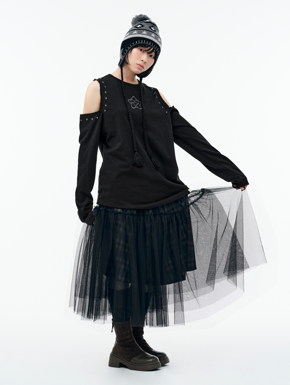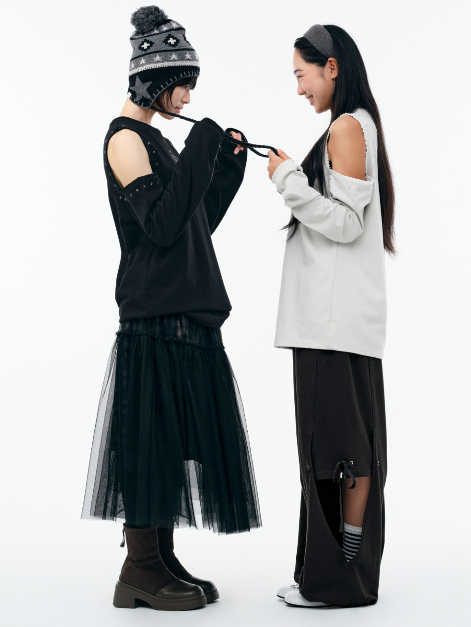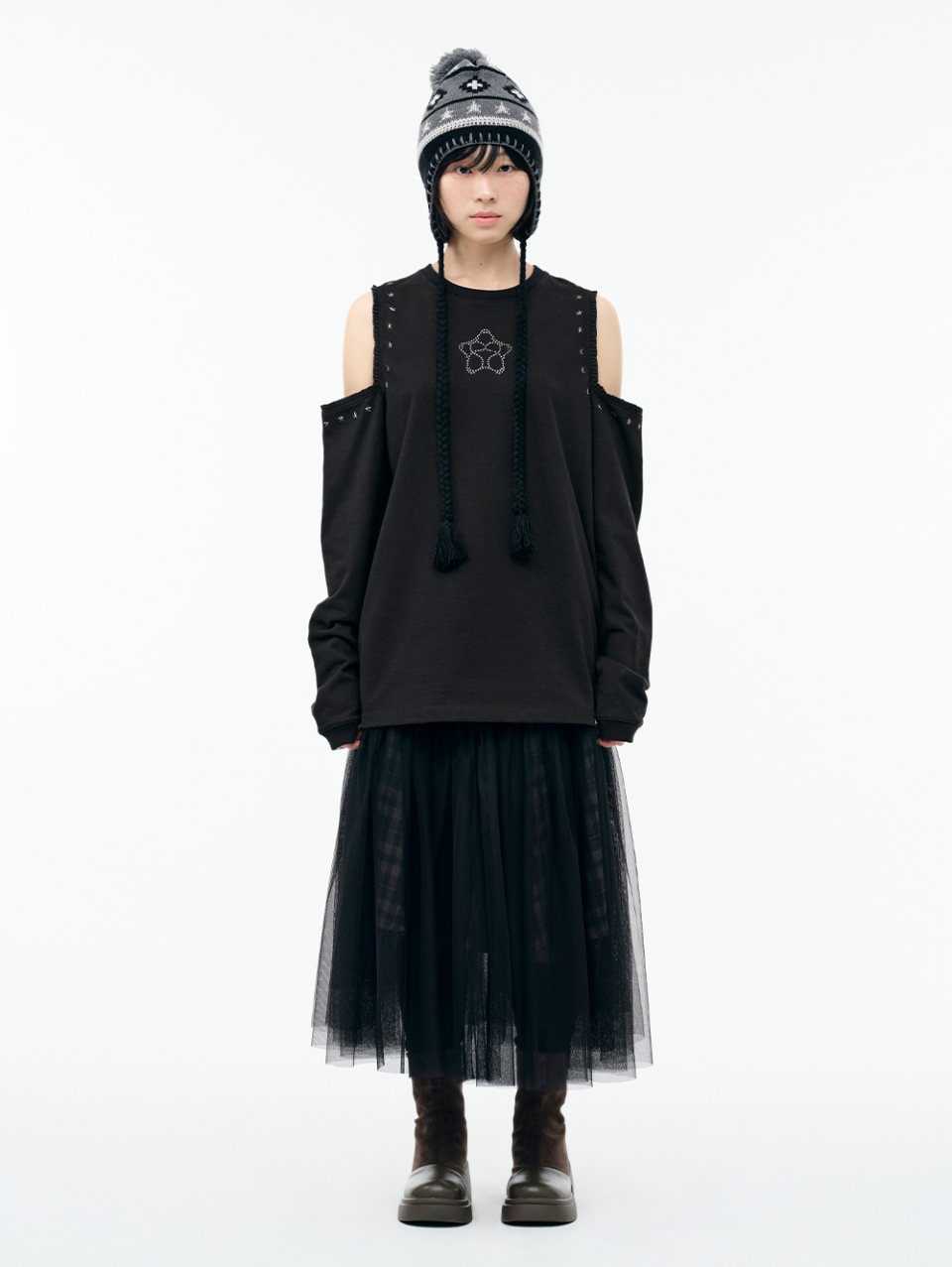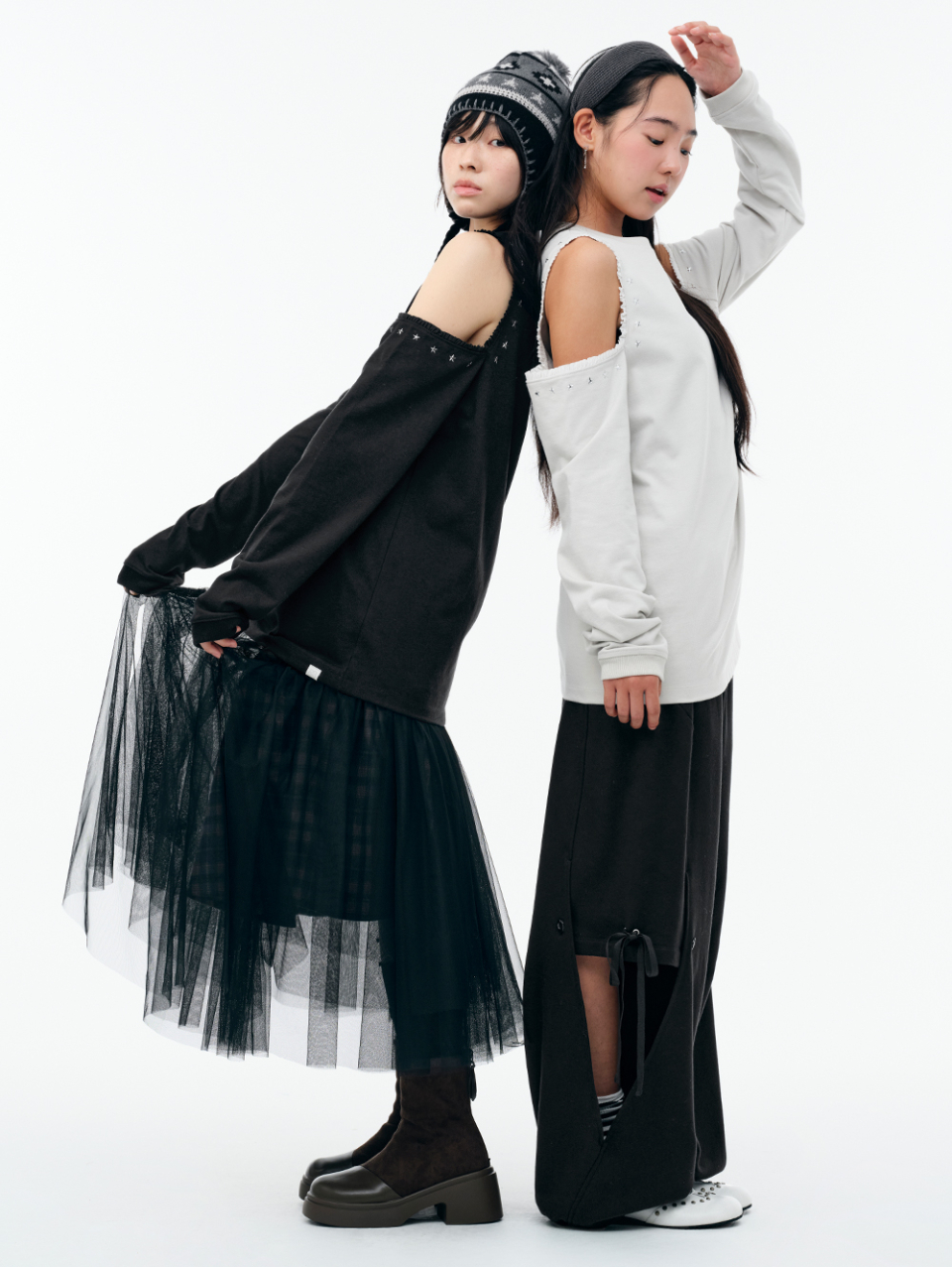 WXT067 구르구르 아플리케 원숄더 맨투맨 (MELANGE GRAY)