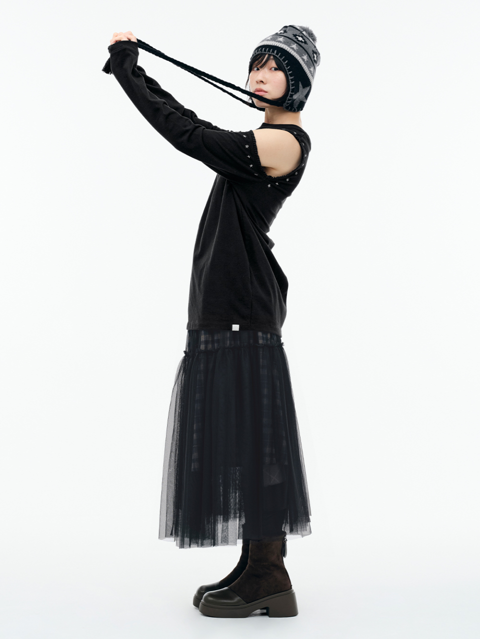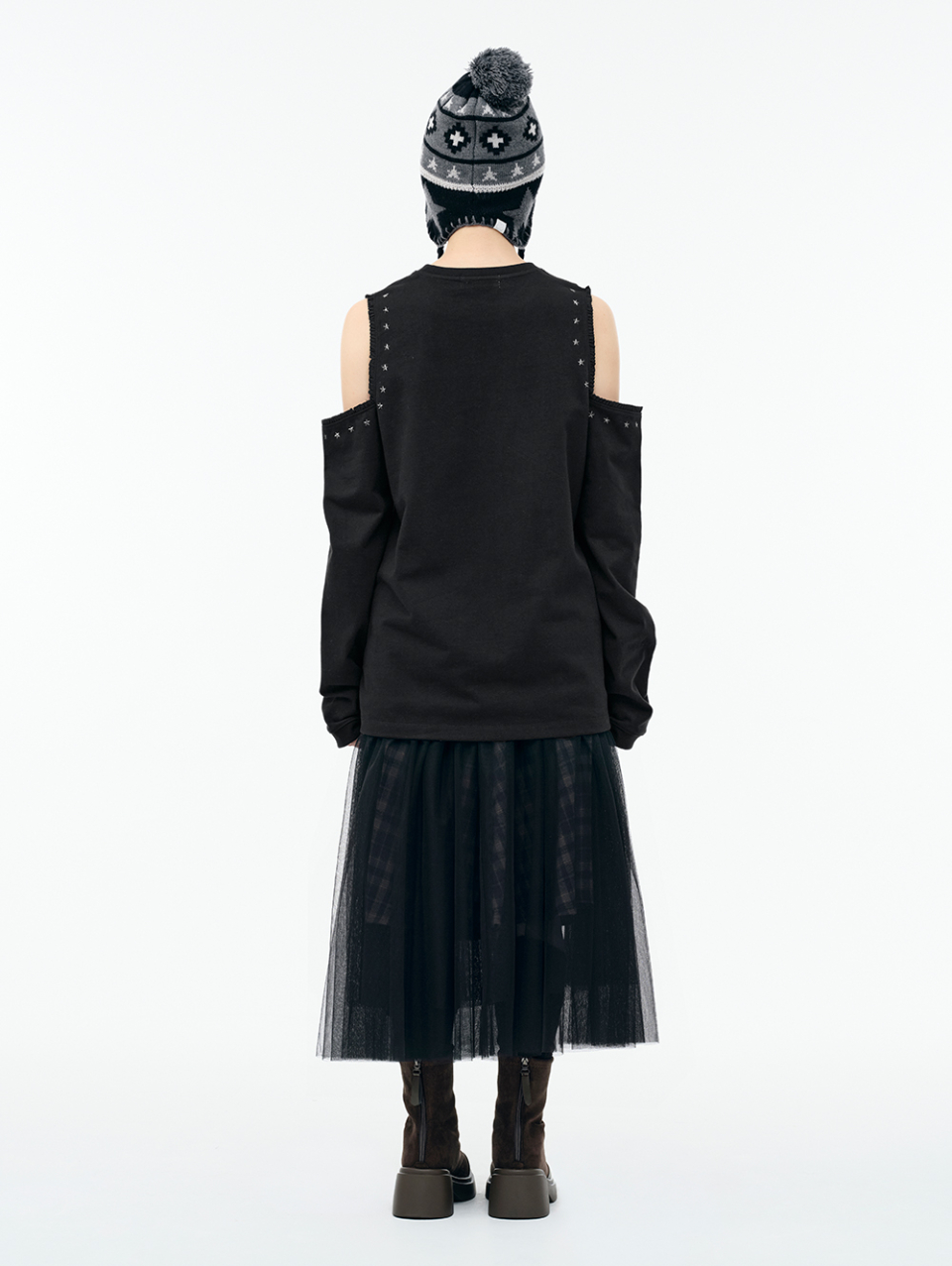 CUT-OUT LACE LONG SLEEVES [BLACK]