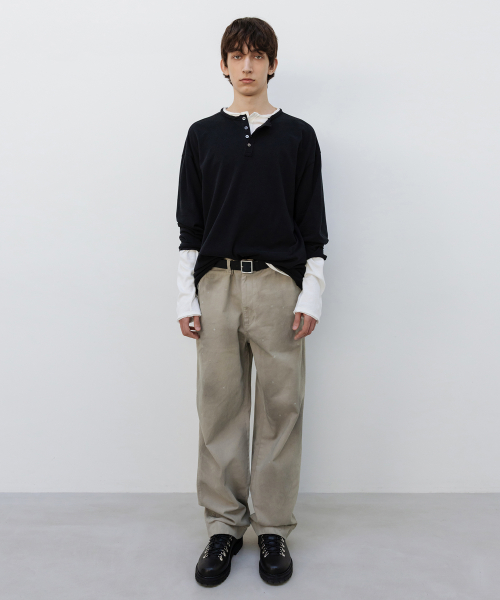 코튼 린넨 헨리넥 롱슬리브 WASHED BLACK