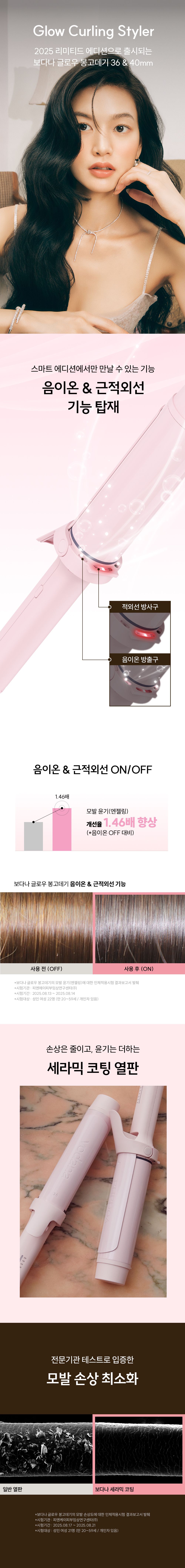 글로우 봉 고데기 36mm/40mm 파우더핑크