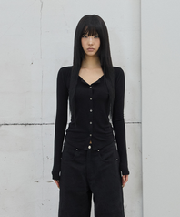 Long-Sleeve Button Cardigan / Black