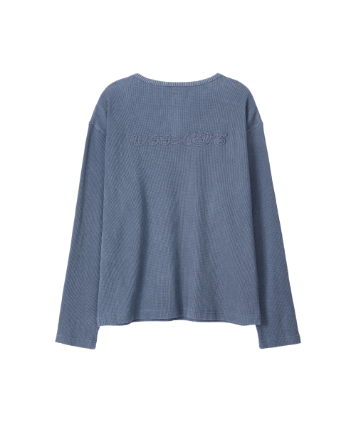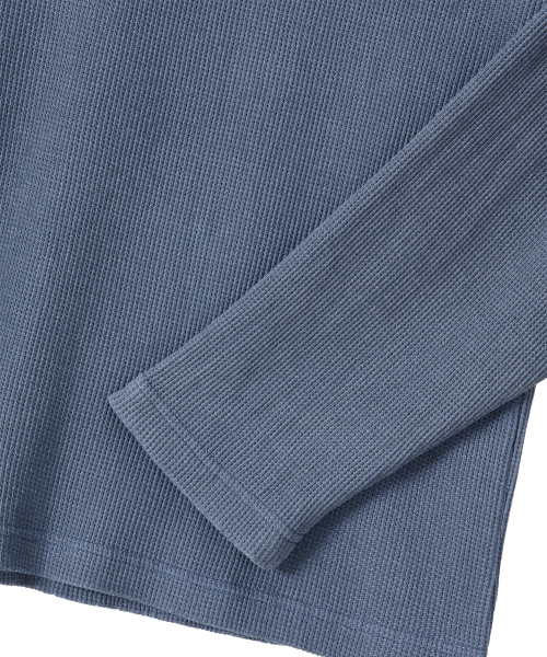 Layered Loose Waffle Henley Neck Long Sleeve Tee - FADE NAVY