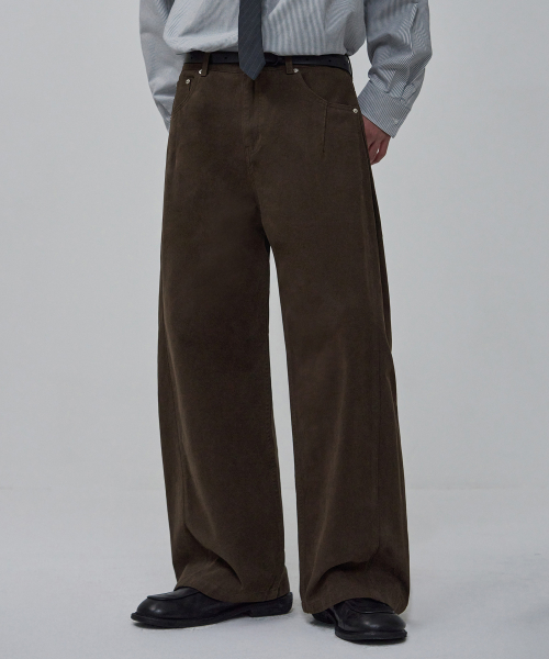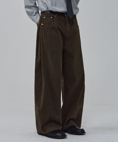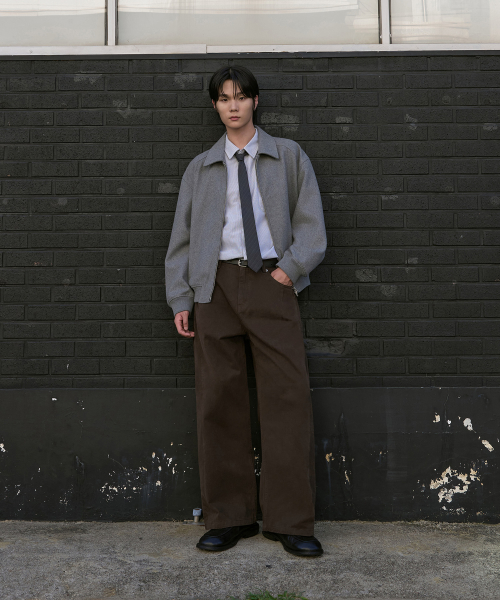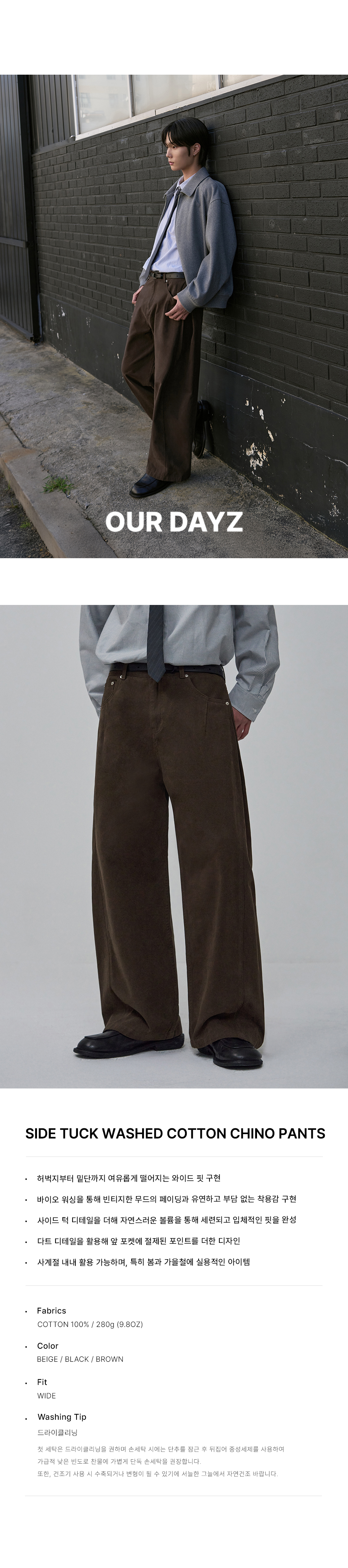 사이드 턱 워시드 코튼 치노 팬츠 [BROWN]