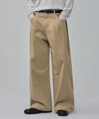 사이드 턱 워시드 코튼 치노 팬츠 [BEIGE]