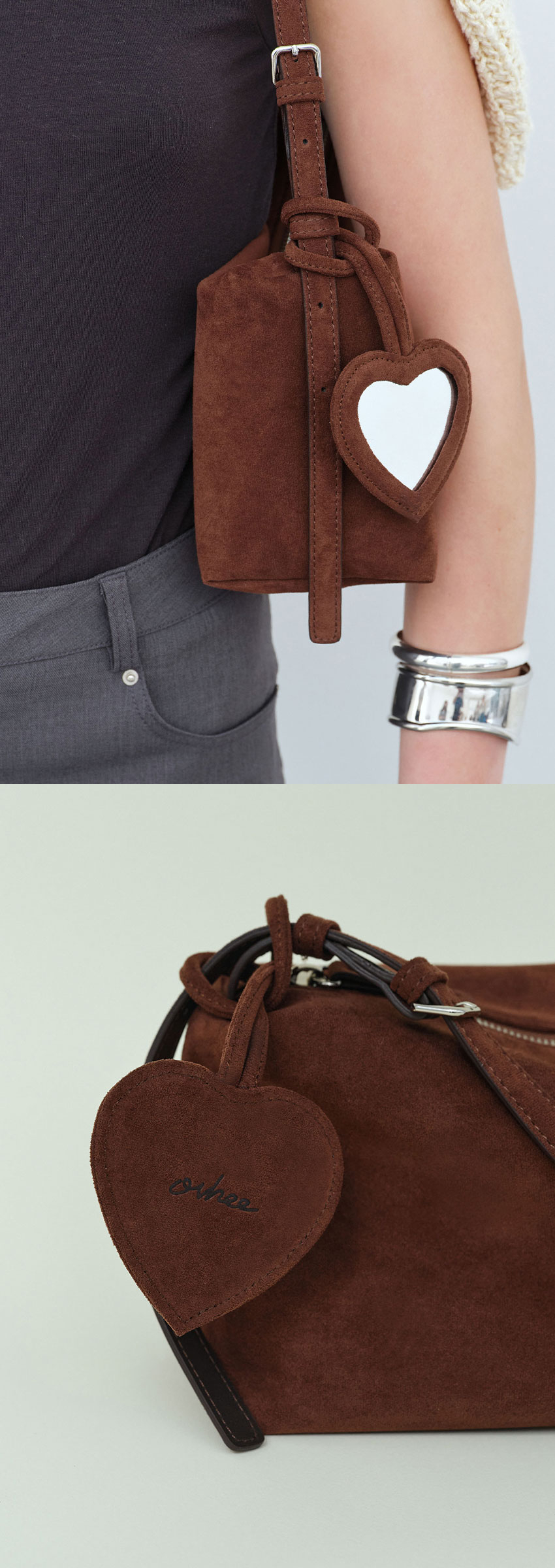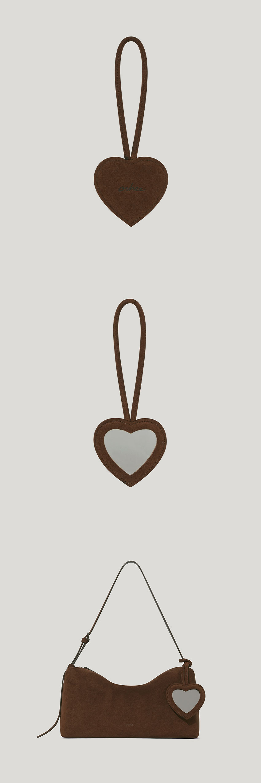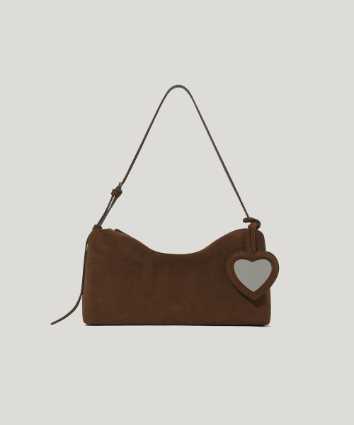 하트 스웨이드 미러 참 Heart Suede Mirror Charm_Chocolate