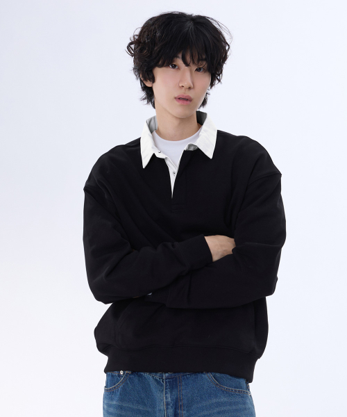 베이직 럭비 카라 맨투맨 GMT-162_블랙